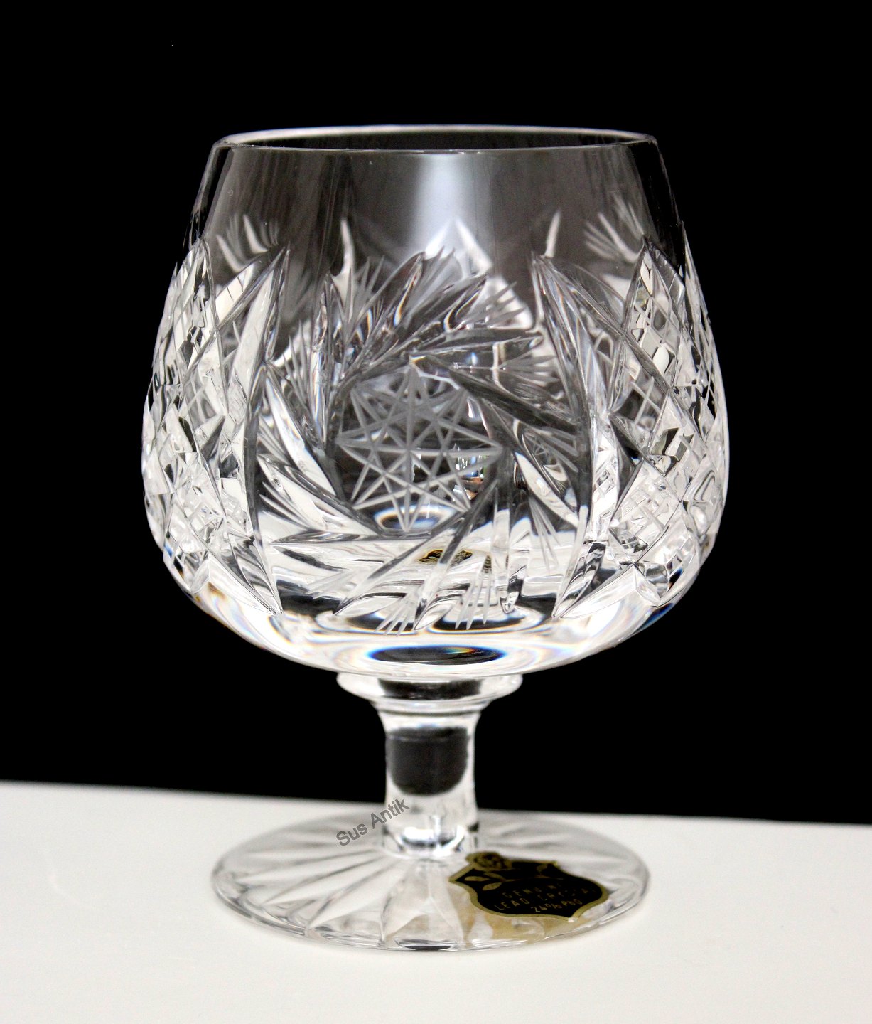 Lyngby glasværk, Granada, Cognac. Mundblæst og håndslebet 24 % Bøhmisk blykrystal med slibninger på kumme, slebet stilk og stjerneslebet fod. Importeret fra Tjekkiet i 1970'erne og solgt via Lyngby glasværk. Cognac. Højde. 10 cm. Øverste diameter 5,5 cm. Pris: 100 kr. stk. Lager: 6