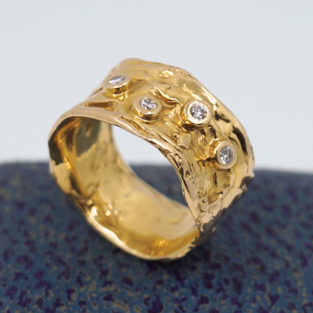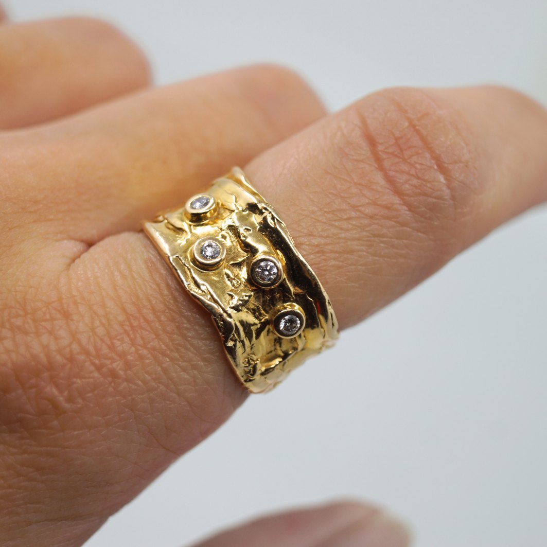Henning Skovgaard; Bred ring i 14 kt. guld med diamanter