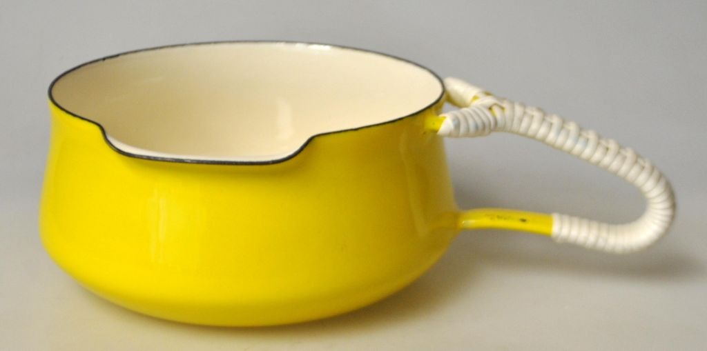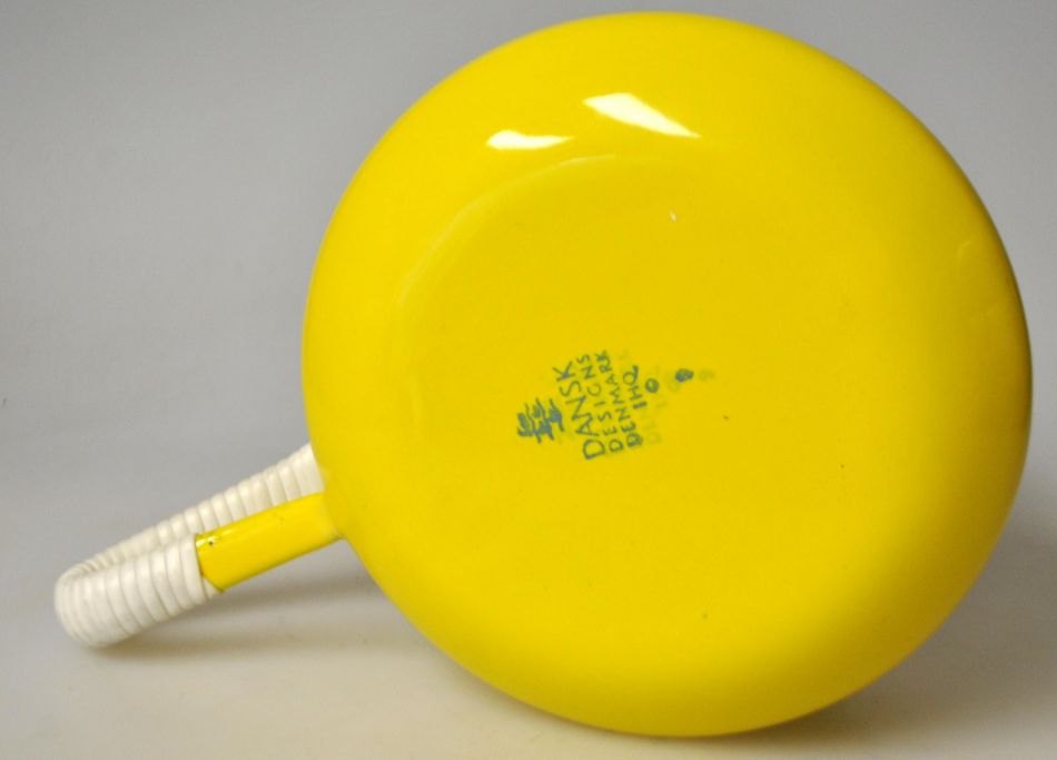 Quistgaard, Jens Harald (1919 - 2008) Dänemark: Butterkanne. Koben-Stil. Gelbe Emaille. Gestempelt. L.: 18 cm. Durchmesser: 11,5 cm.Scheint unbenutzt zu sein!