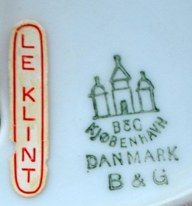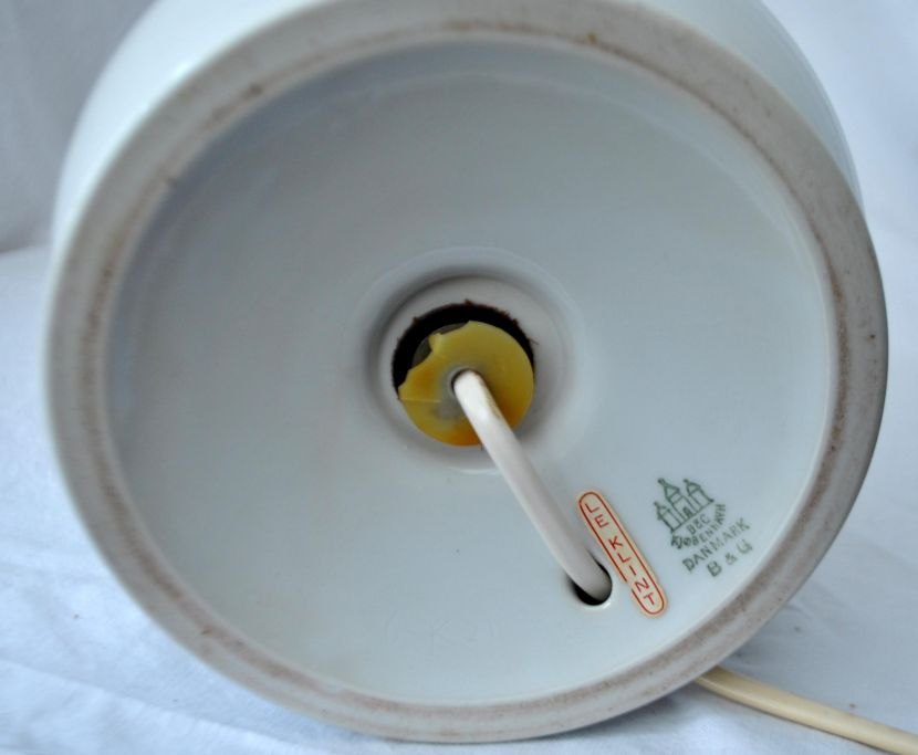 Tischleuchte „Le Klint“ von Bing & Grondahl, 20. Jahrhundert. Dänemark. Gestempelt. Höhe: 47 cm. Höhe inkl. Schirm: 65 cm. Durchmesser: 17 cm. Schirmdurchmesser: 43 cm.Bestellnummer: 28547