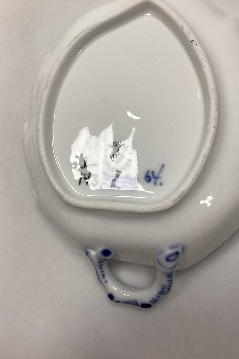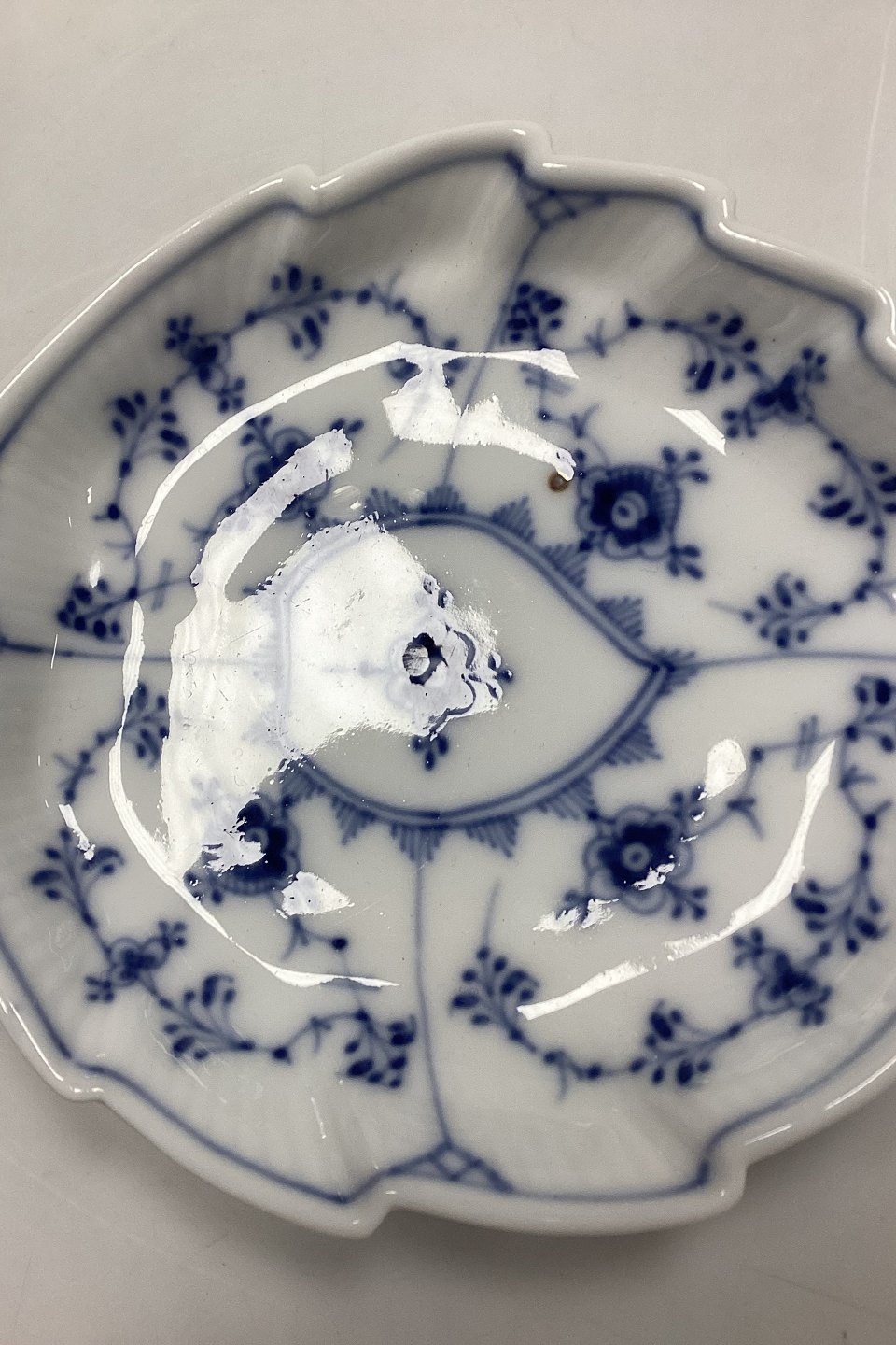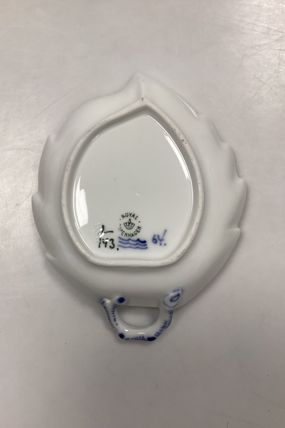 Royal Copenhagen Musselmalet Riflet Bladformet Asiet No. 143. Tydelig brændingsfejl og sættemærker, se foto.Måler 18,5 cm x 14 cm / 7.29 in. x 5.52 in. 2. Sortering