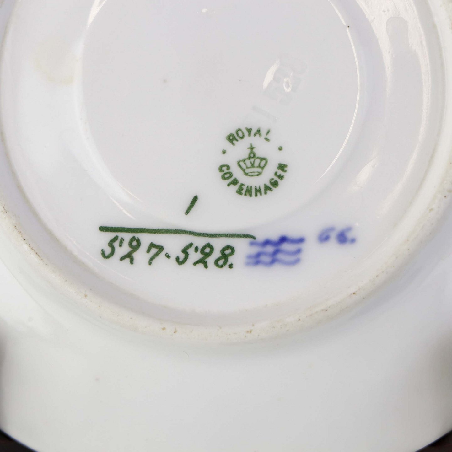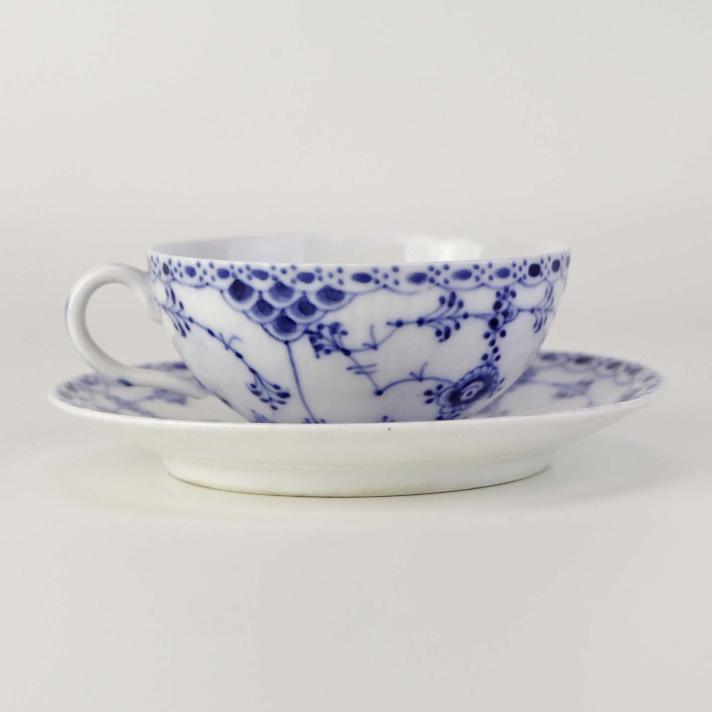 Lille tekop med underkop i kongeligt porcelæn fra stellet Musselmalet Halvblonde. Nr. 1/523 og 1/527-528