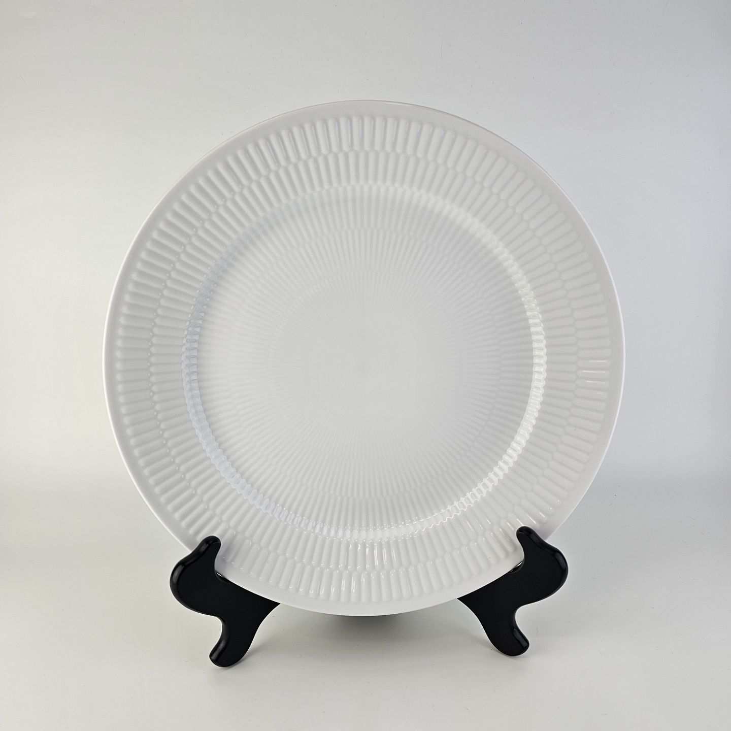 Flad middagstallerken i kongeligt porcelæn fra stellet Hvid RifletNr. 627