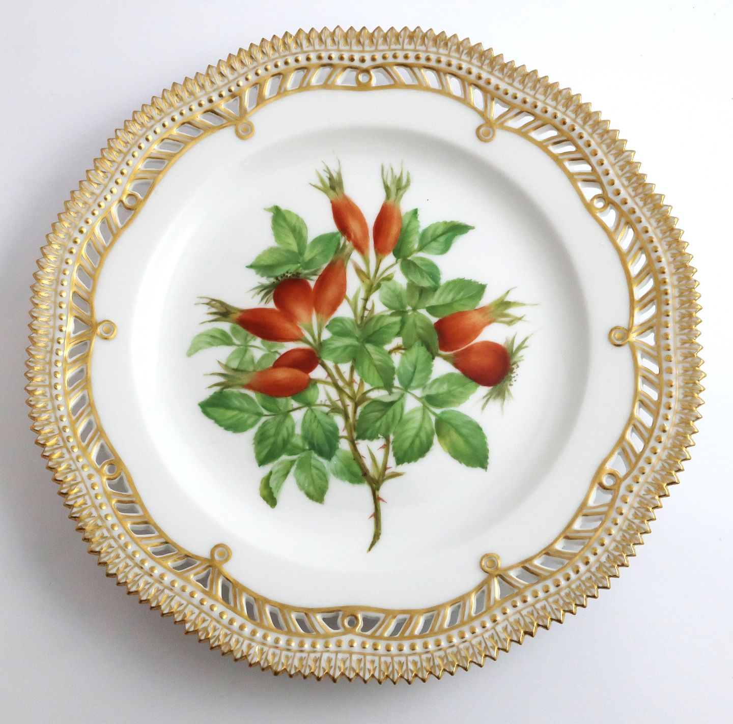 Royal Copenhagen Flora Danica, Obstteller. Mittagessen Platte mit durchbrochener kante. Entwurf # 429/3554. Durchmesser 23 cm. (1 Wahl).