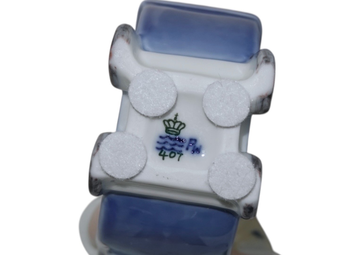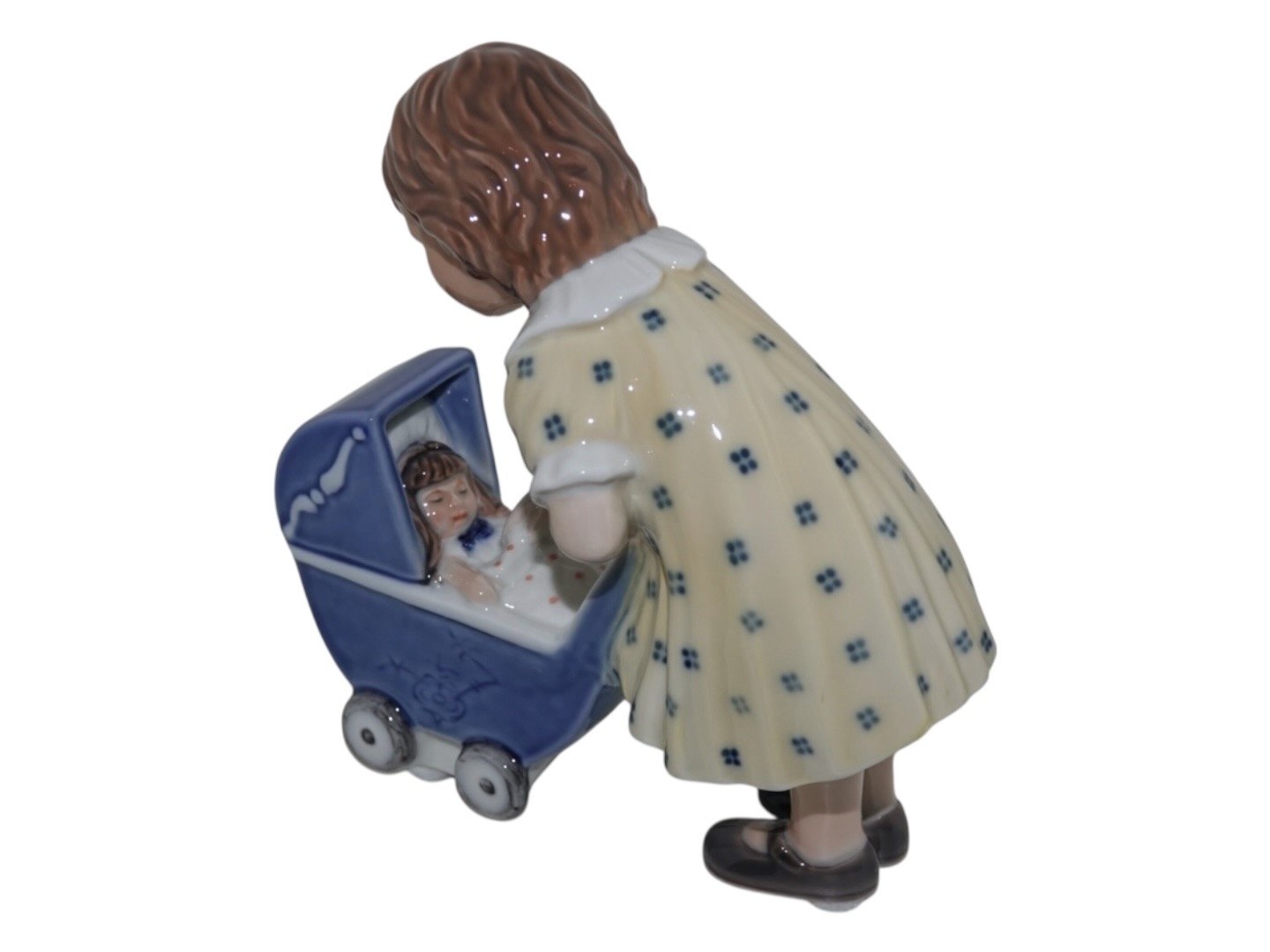 Større Royal Copenhagen figur, pige med blå barnevogn.Dekorationsnummer 407.