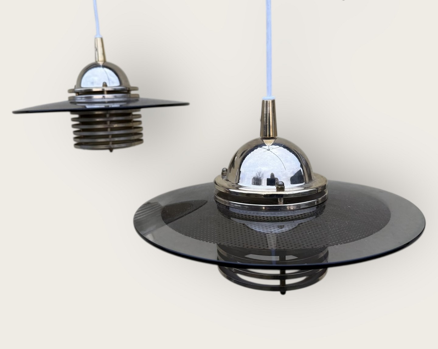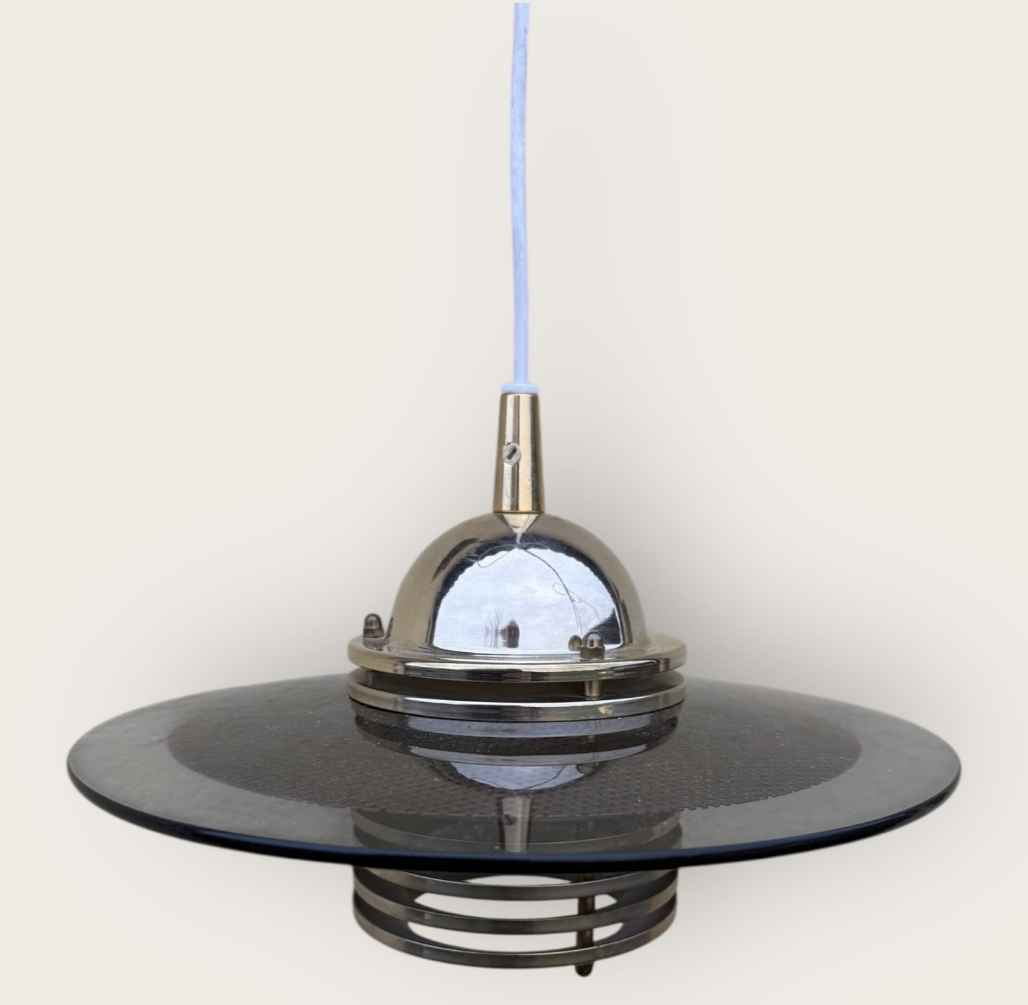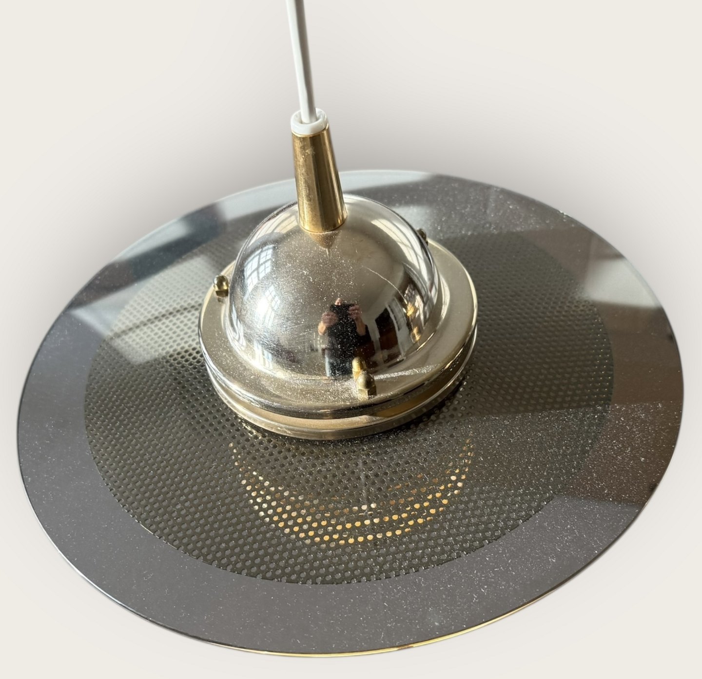 Jan-Eskild Eskildsson, Belid, Schweden, Reflektor-Deckenleuchte aus Rauchglas und Messing, Durchmesser 29 cm *guter Zustand*Lager: 2