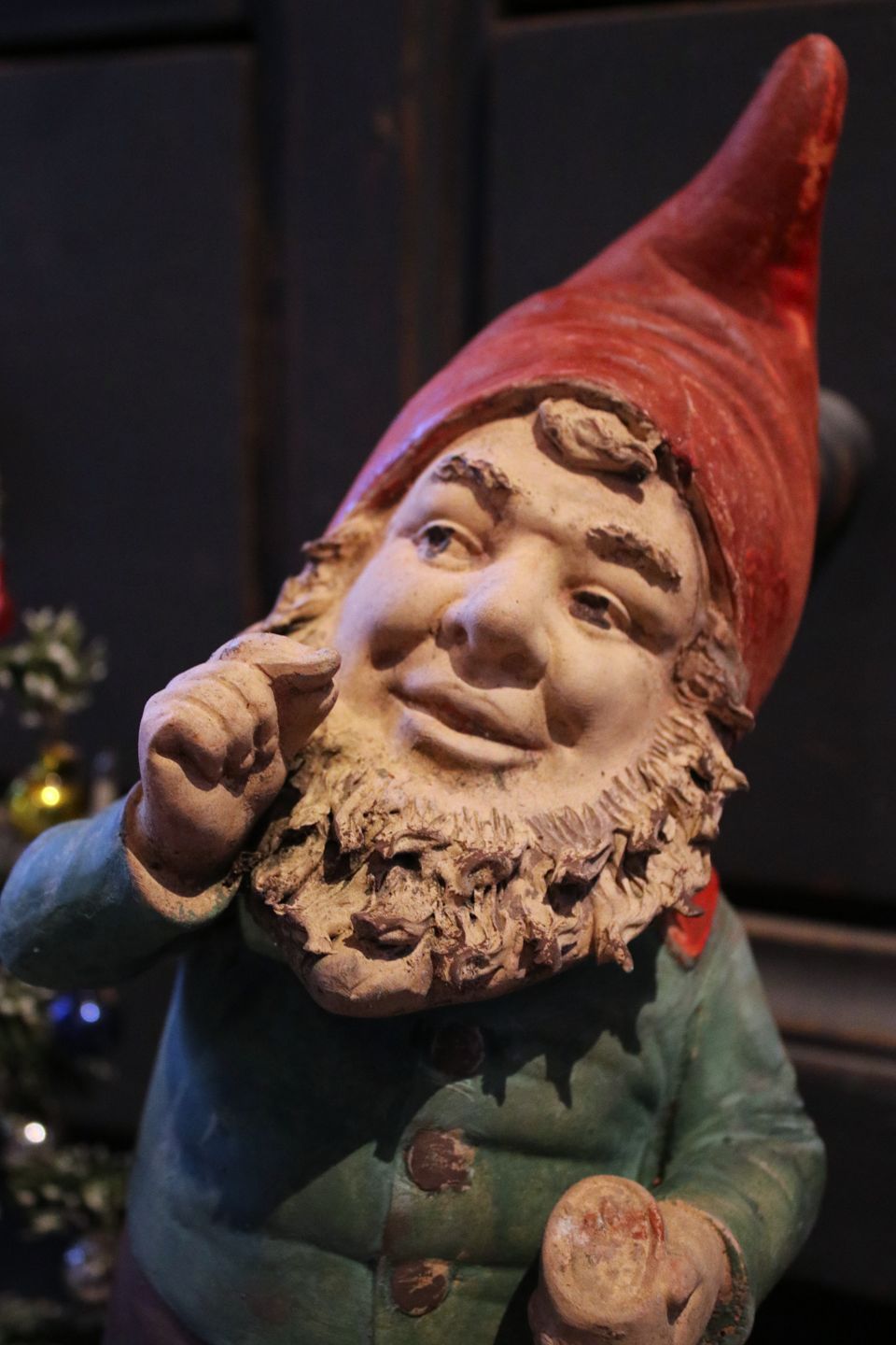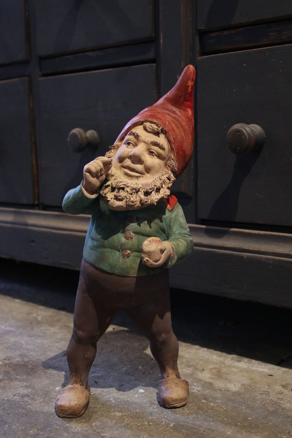 Antik terrakotta nisse med gammel bemaling og en fin patina....