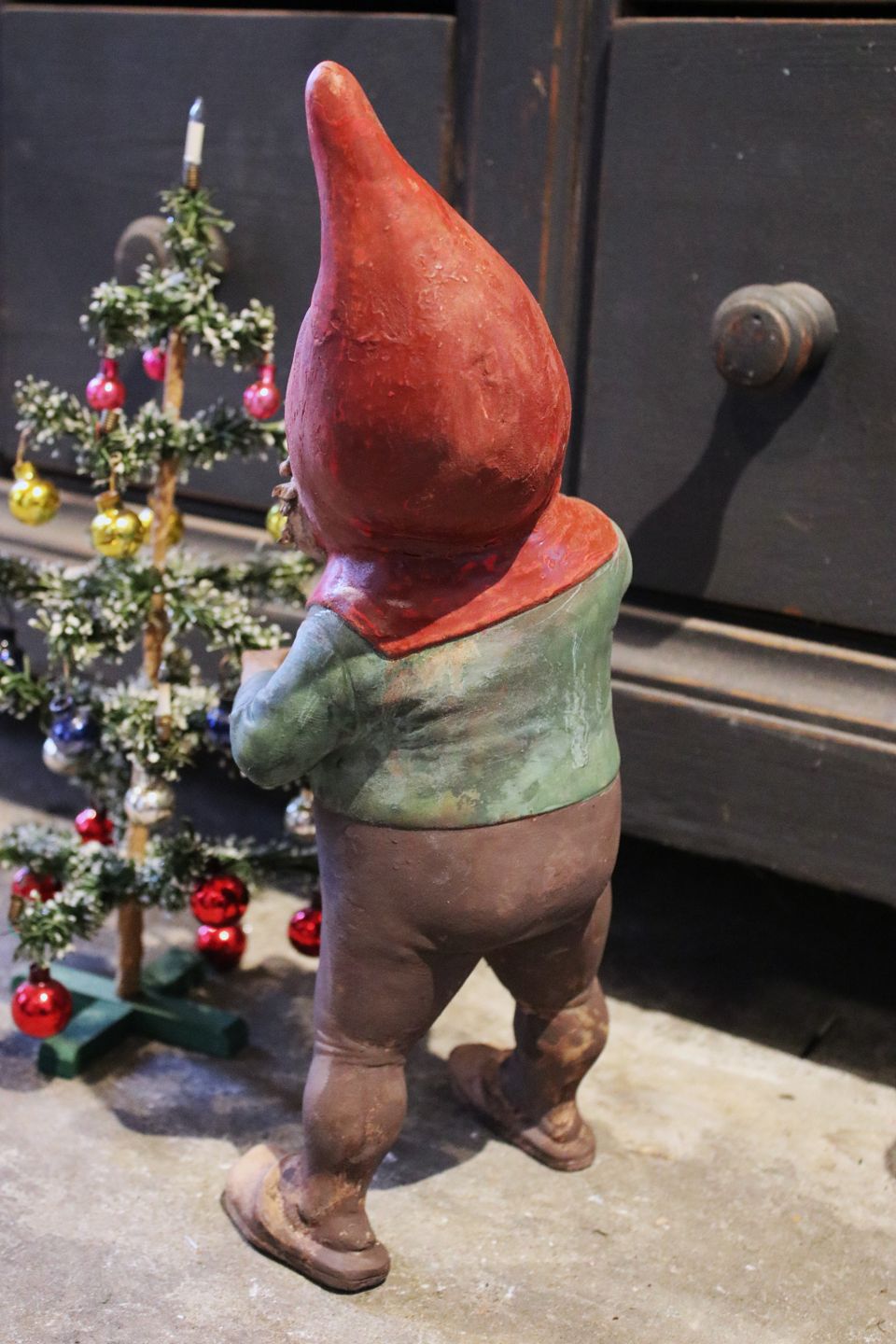 Antik terrakotta nisse med gammel bemaling og en fin patina.Højde: 36,5cm.