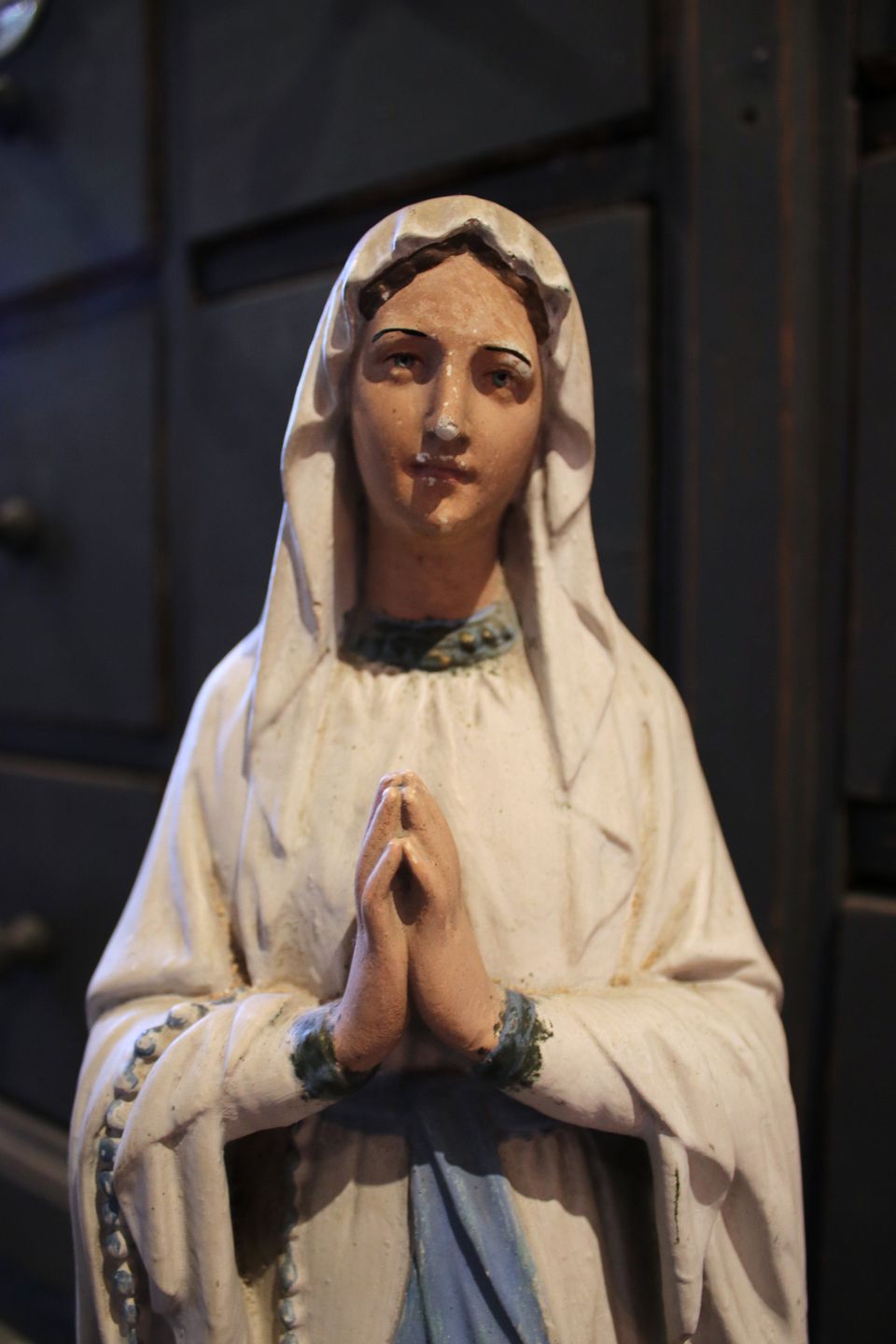 Fin , gammel fransk Madonna figur i bemalet gips med en fin gammel patina.