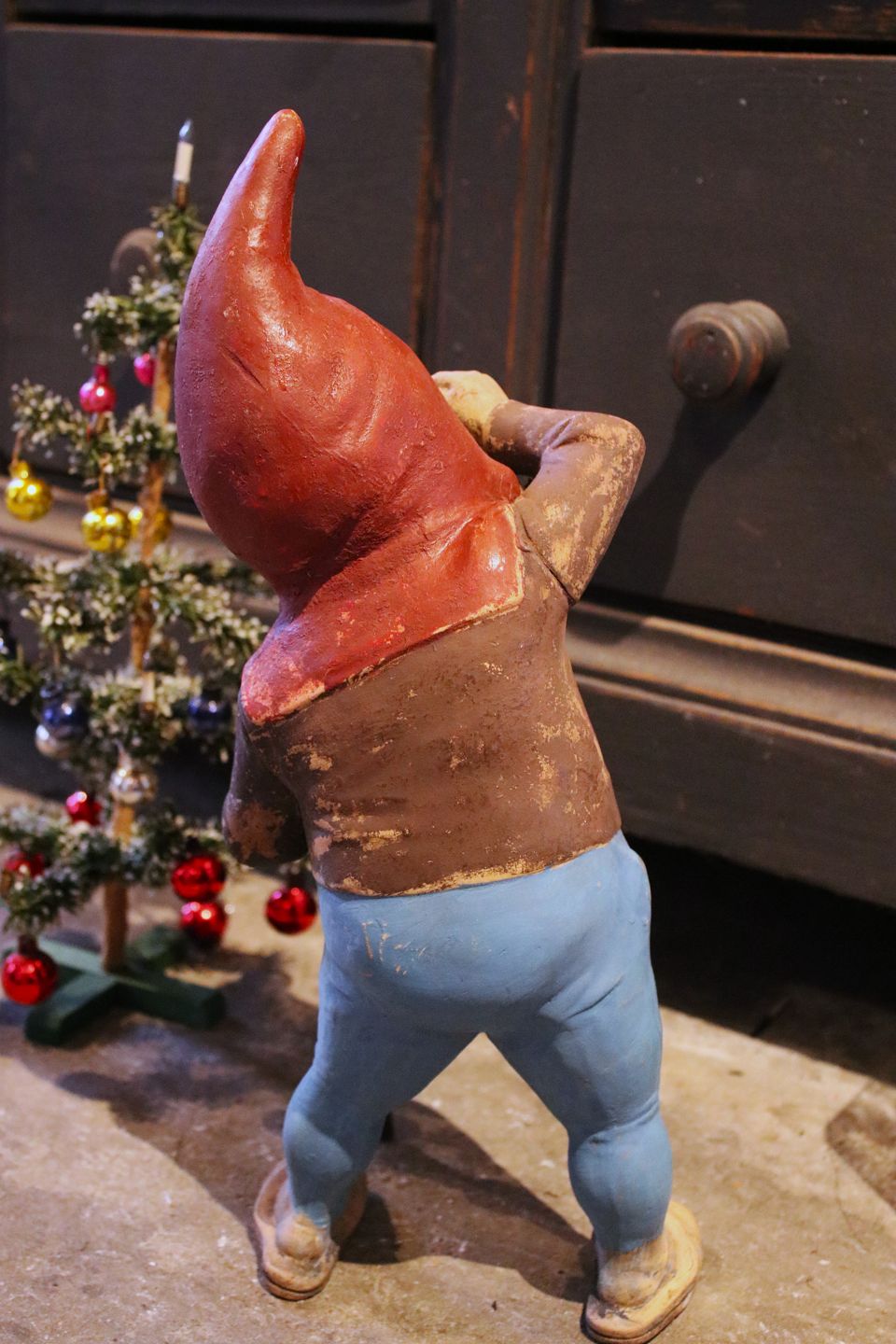 Antik terrakotta nisse med gammel bemaling og en fin patina....