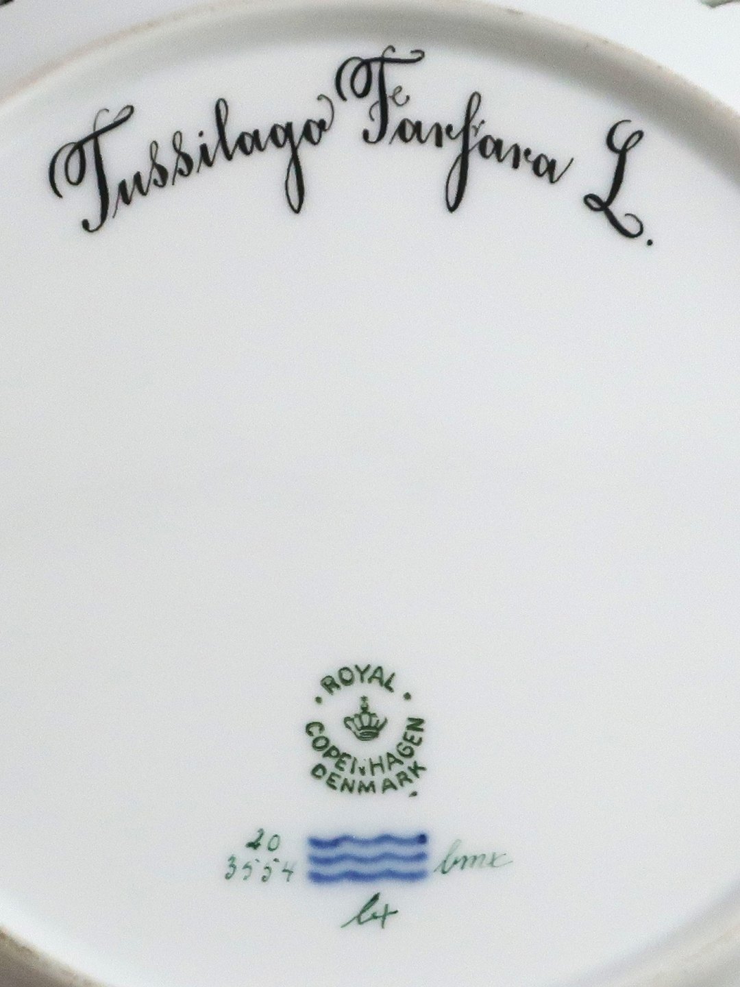 Royal Copenhagen Flora Danica. Mittagessen Platte mit durchbrochener kante. Entwurf # 3554. Durchmesser 23 cm. (1 Wahl). Tussilago farfara L Händler