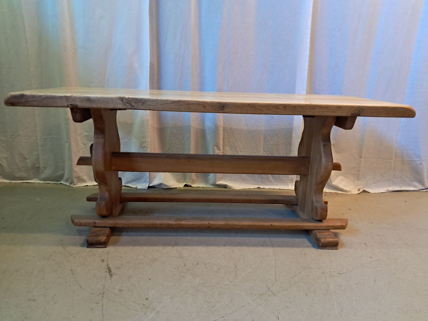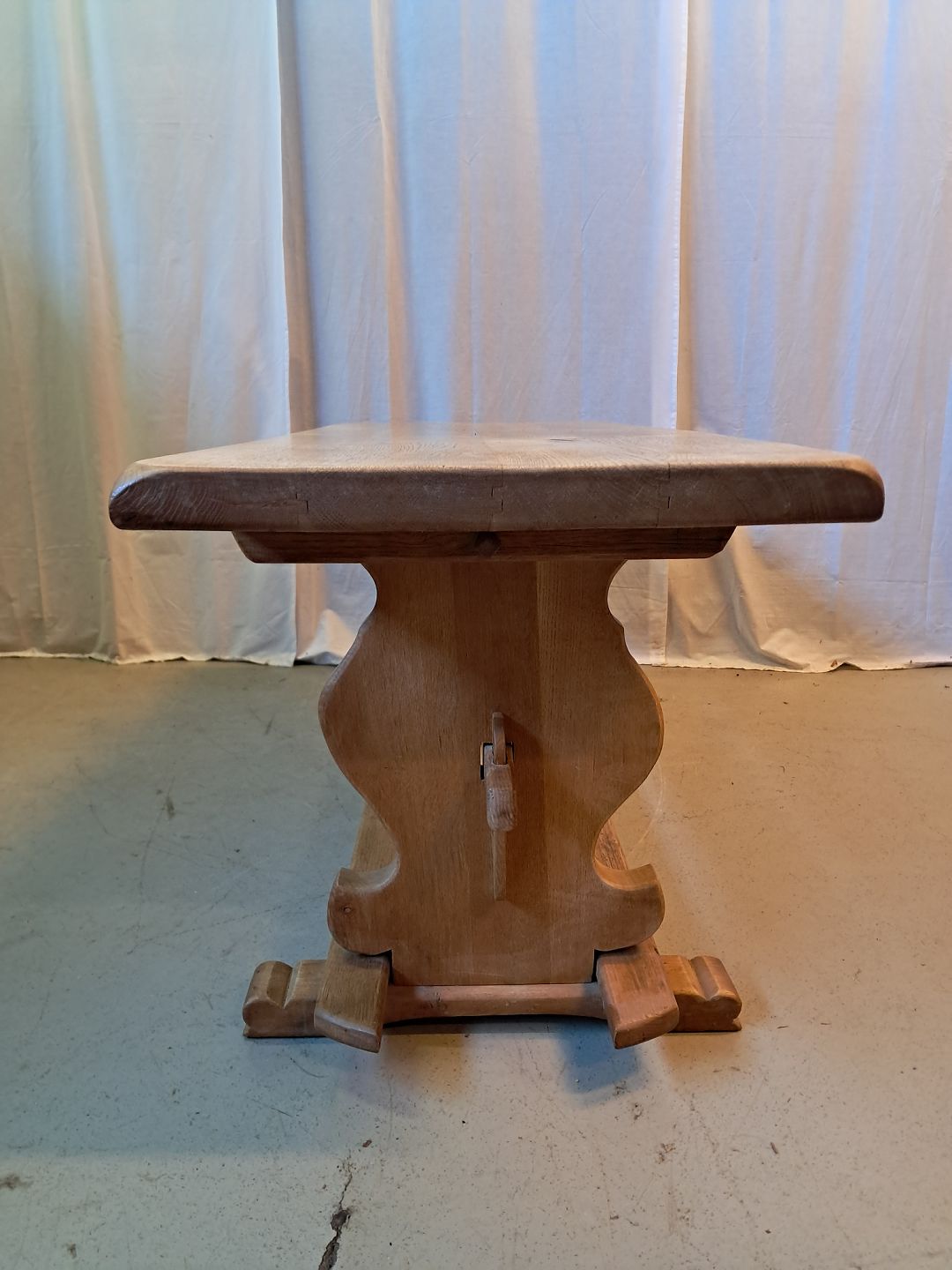 Sofabord i massivt egetræ, fra 1970erne.Det har brugsspor.