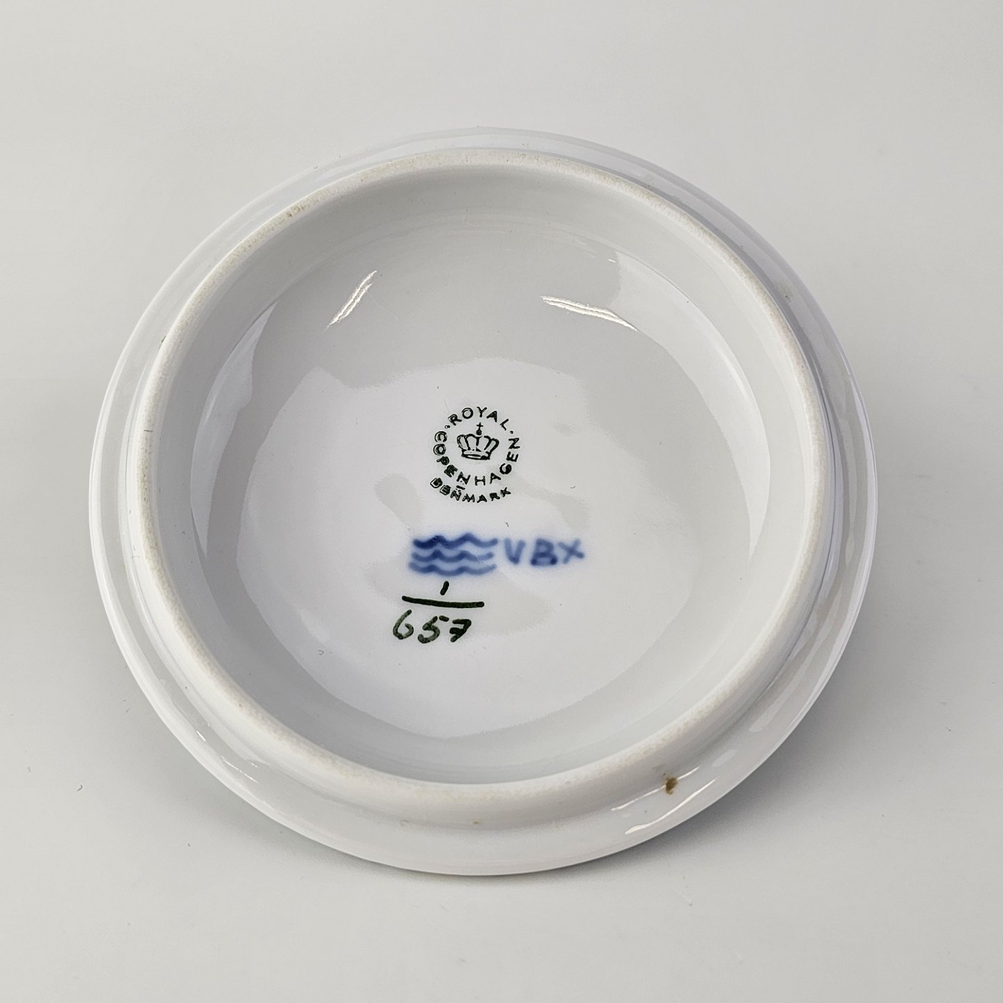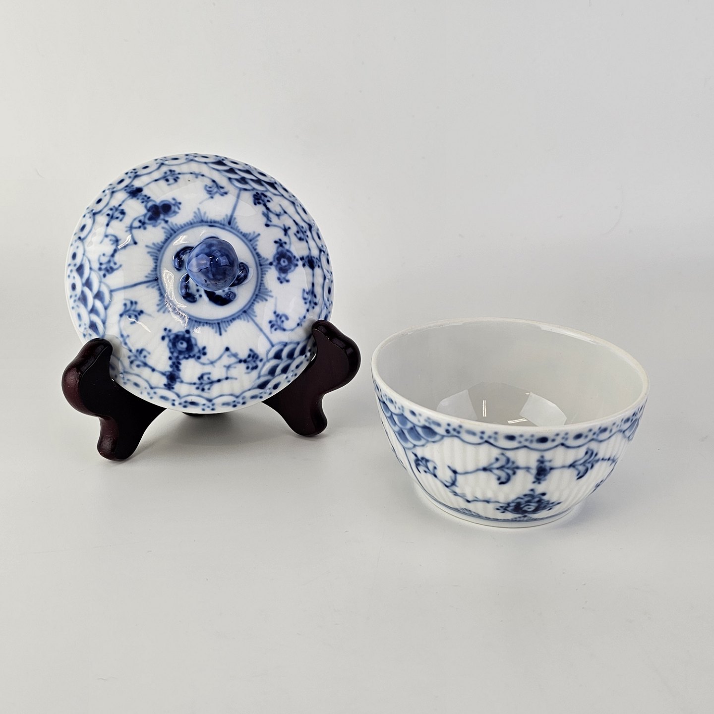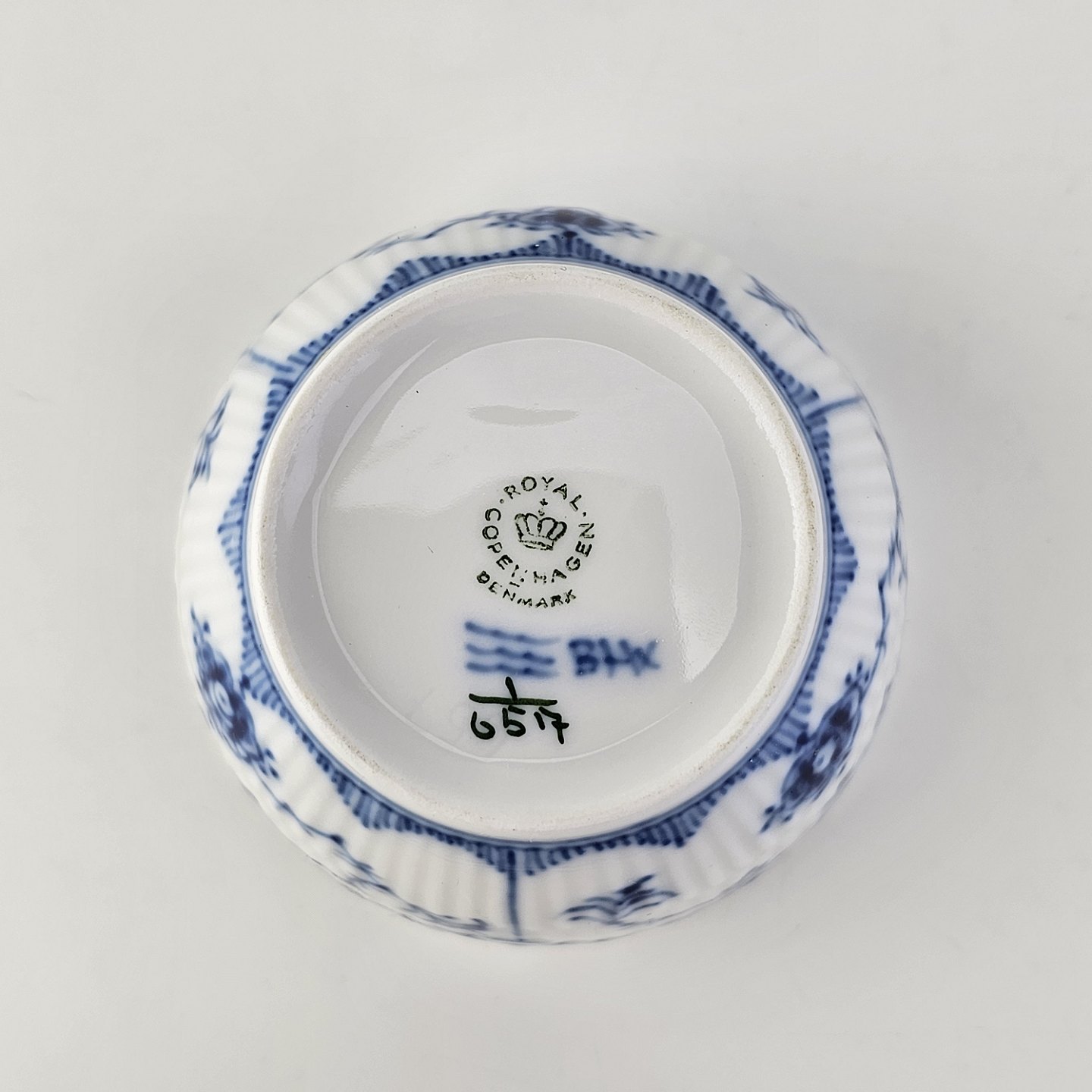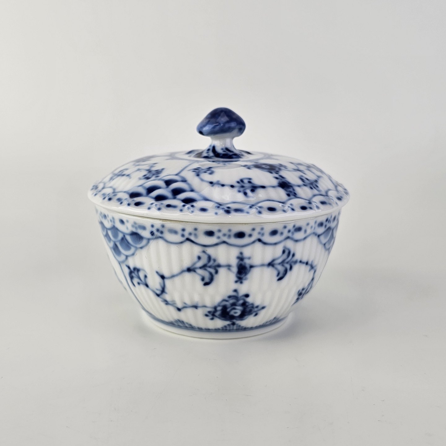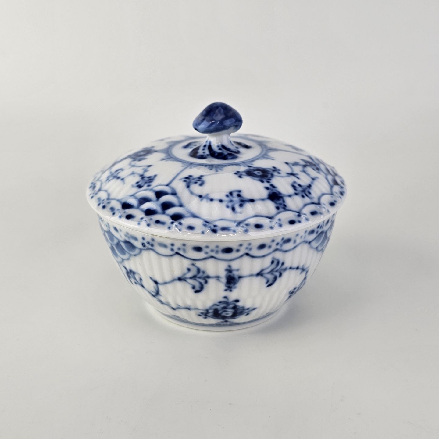 Sukkerskål i kongeligt porcelæn fra stellet Musselmalet HalvblondeNr. 1/657