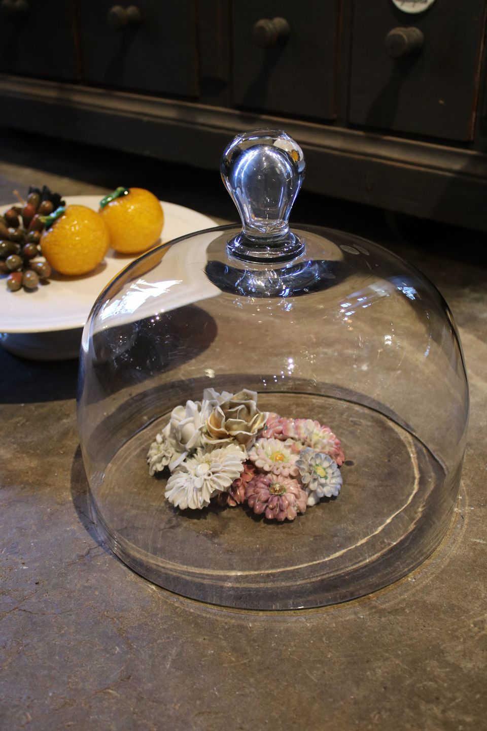 STOR , gammel glasklokke med knop i mundblæst glas.