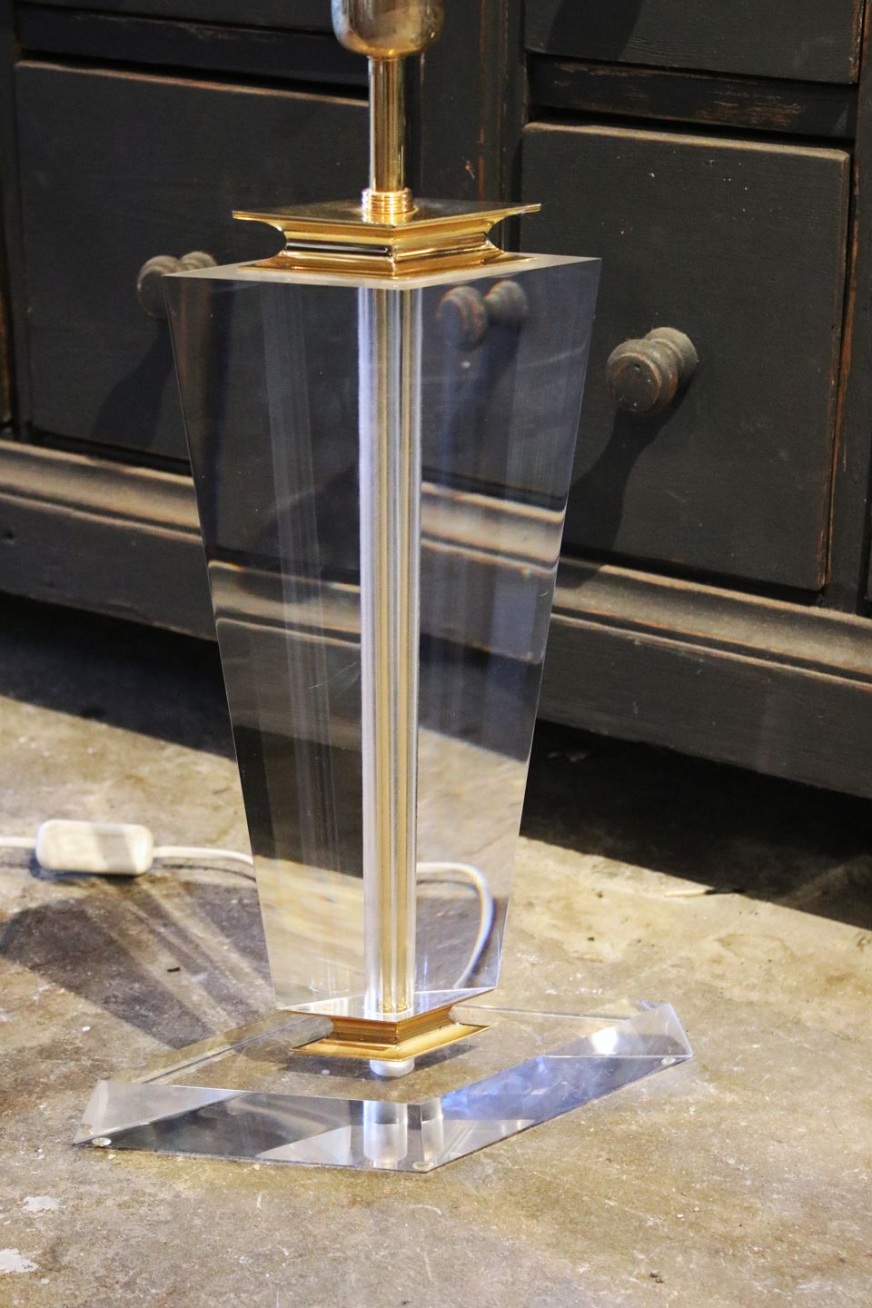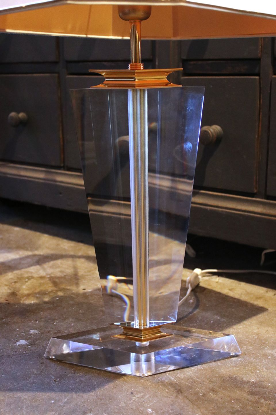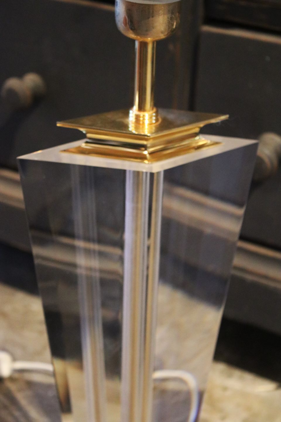 Et par franske Hollywood Regency akrylglas bordlamper fra 1970'erne. med messing kanter og originale 6 kantet