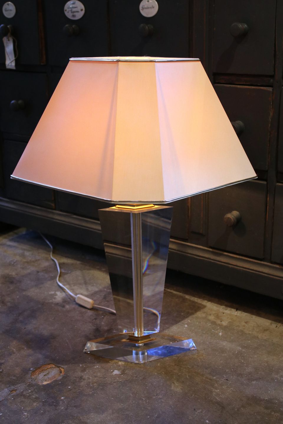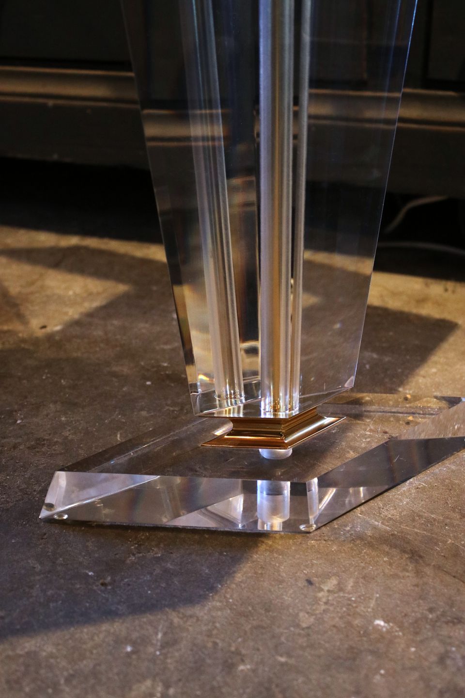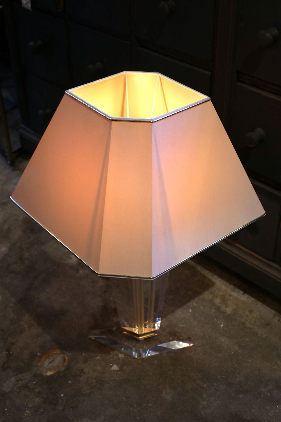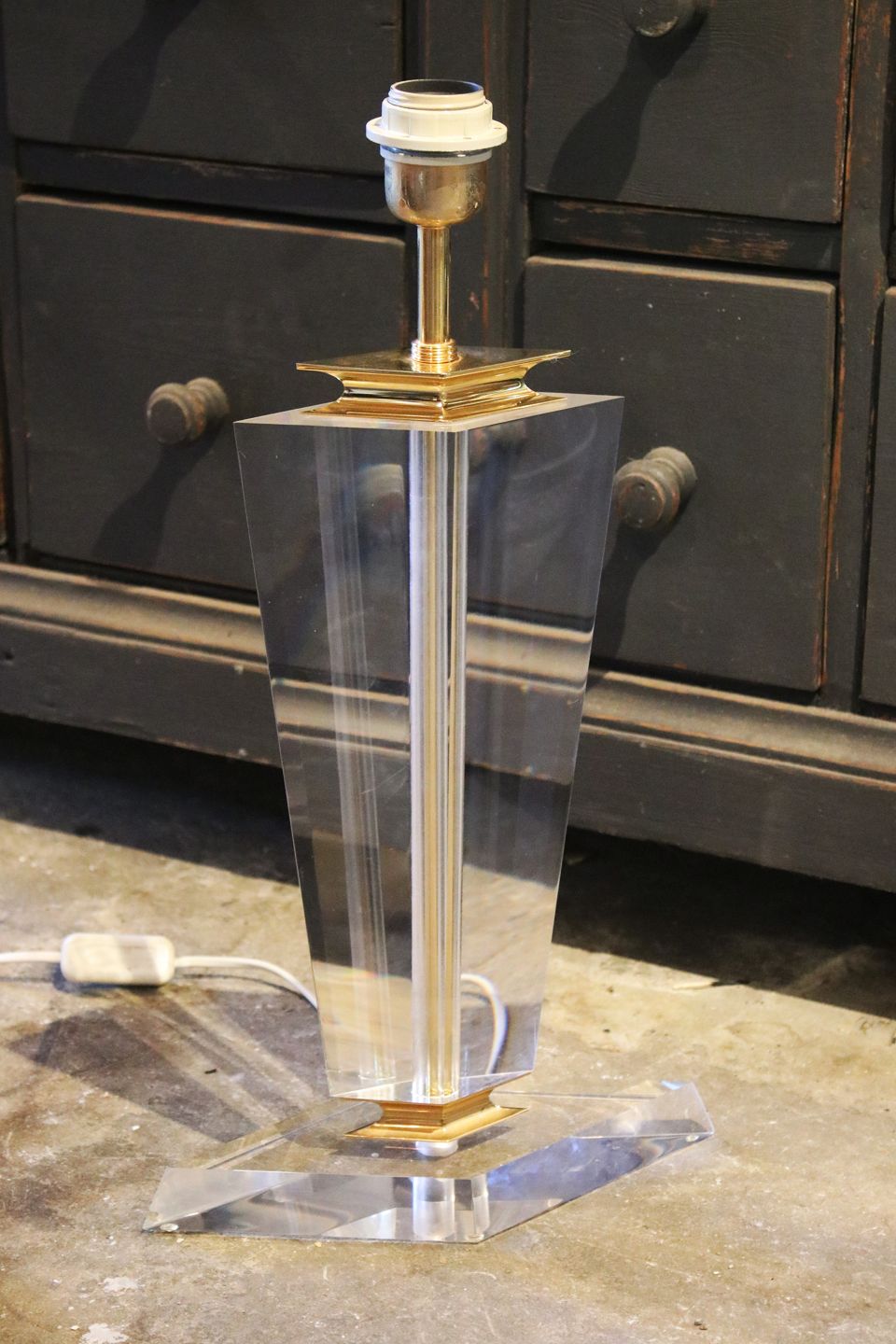 Et par franske Hollywood Regency akrylglas bordlamper fra 1970'erne. med messing kanter og originale 6 kantet