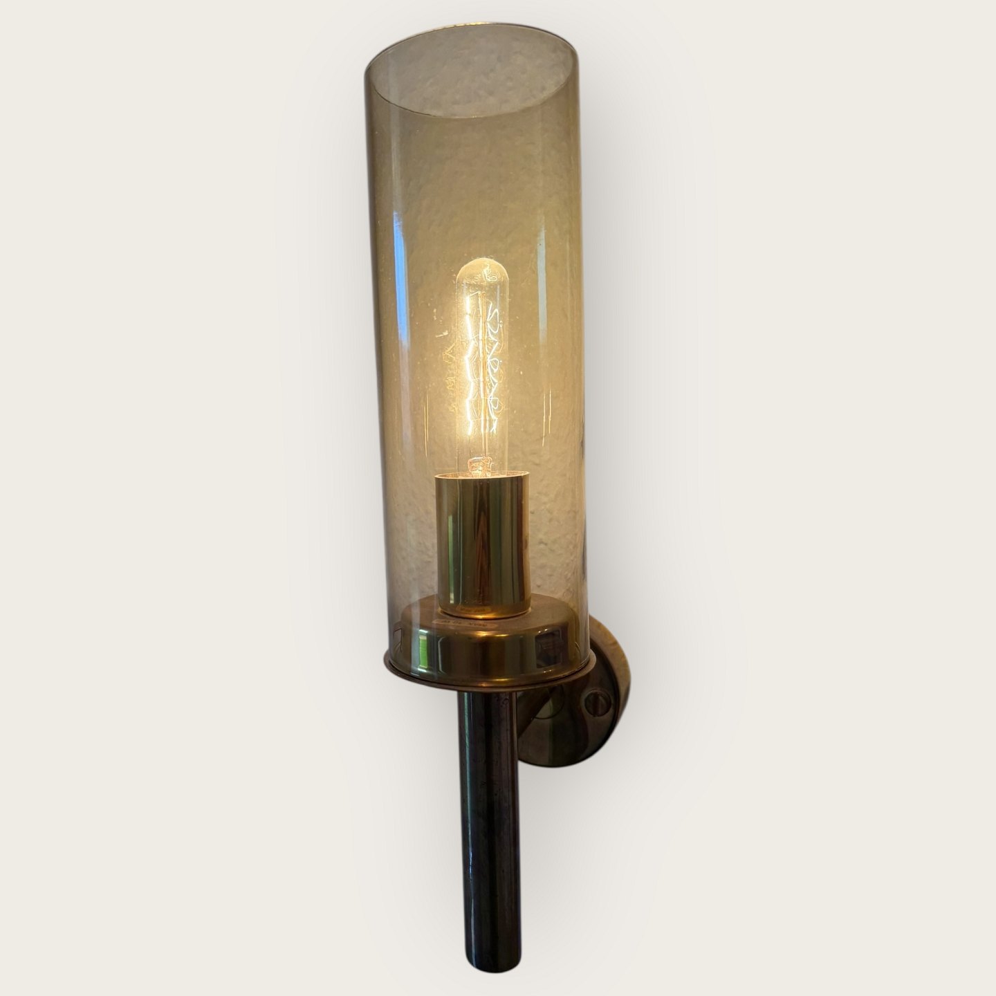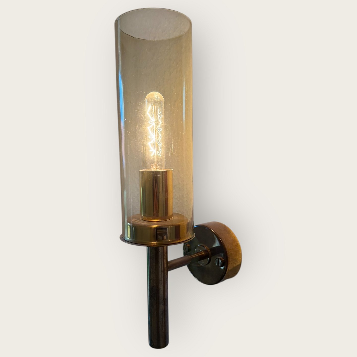 Hans-Agne Jakobsson, Wandleuchten aus Glas und Messing, Modell: V169/1, Markaryd, Schweden, Höhe mit Glasschirmen 37 cm * Guter Zustand *Lager: 2