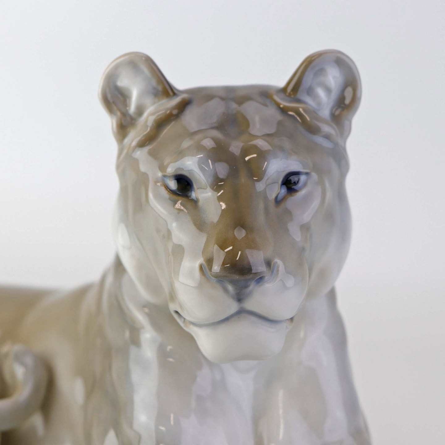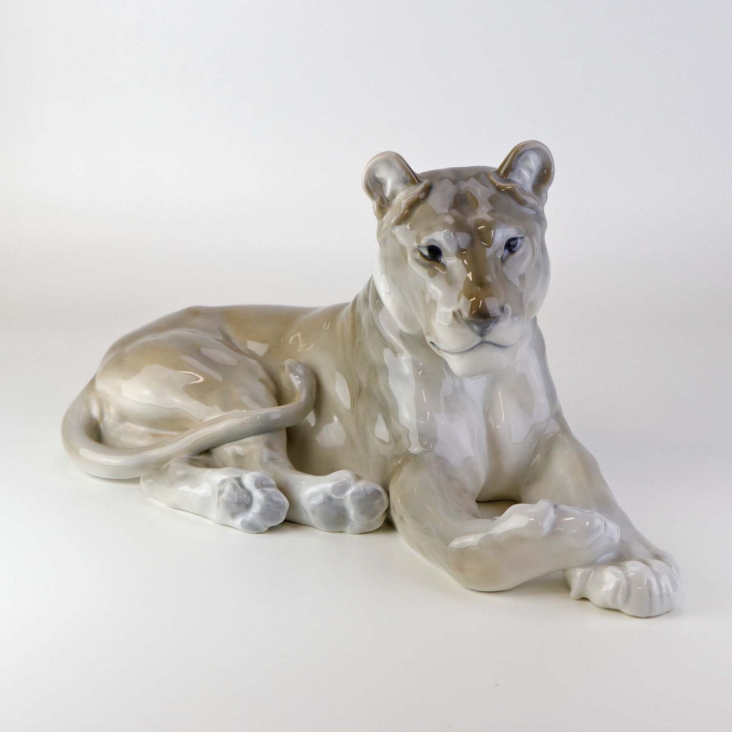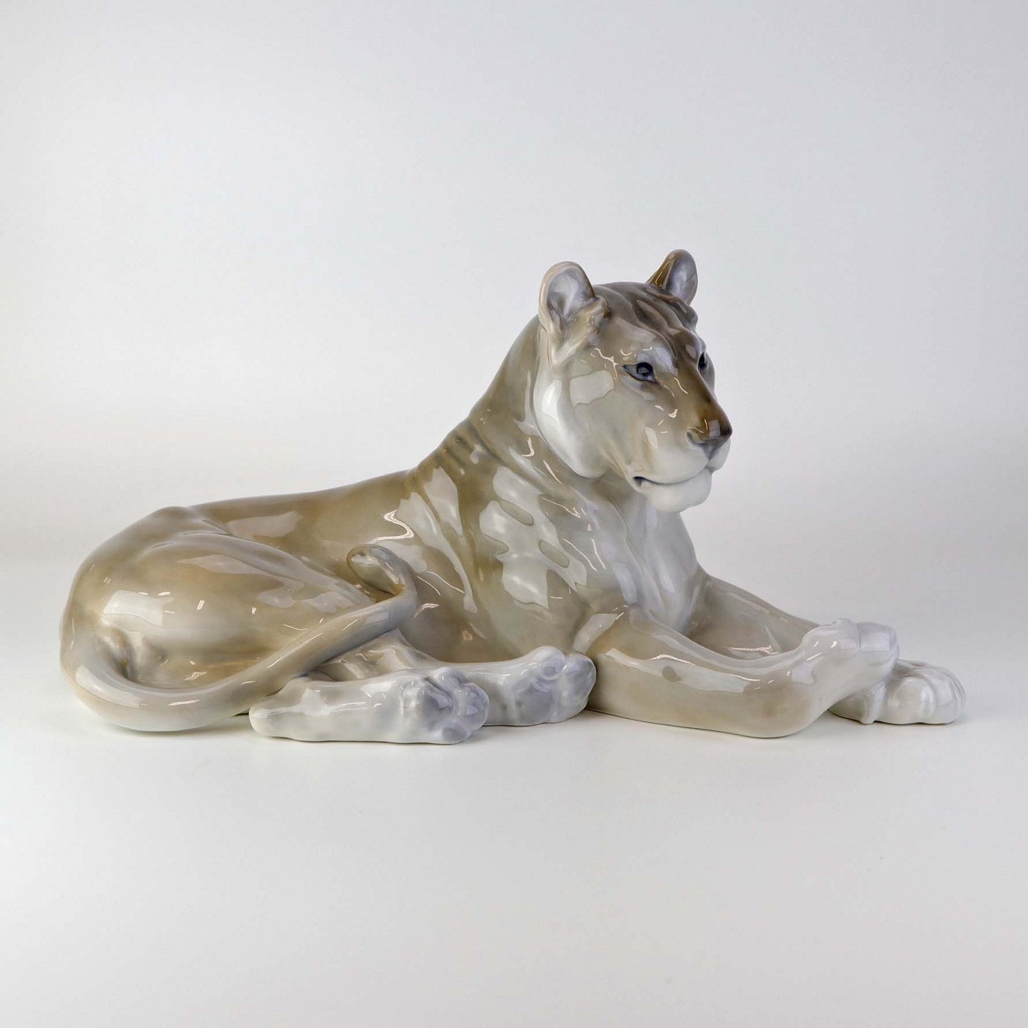 Figur i porcelæn med motiv af hvilende løvinde. Nr. 804Producent Royal Copenhagen