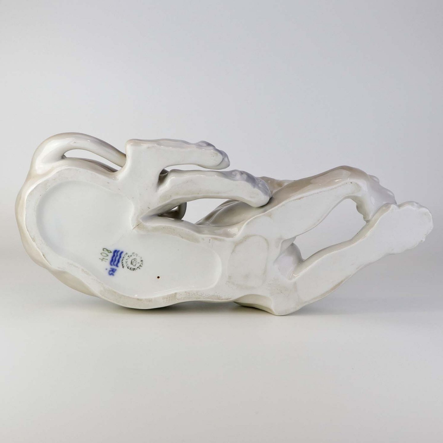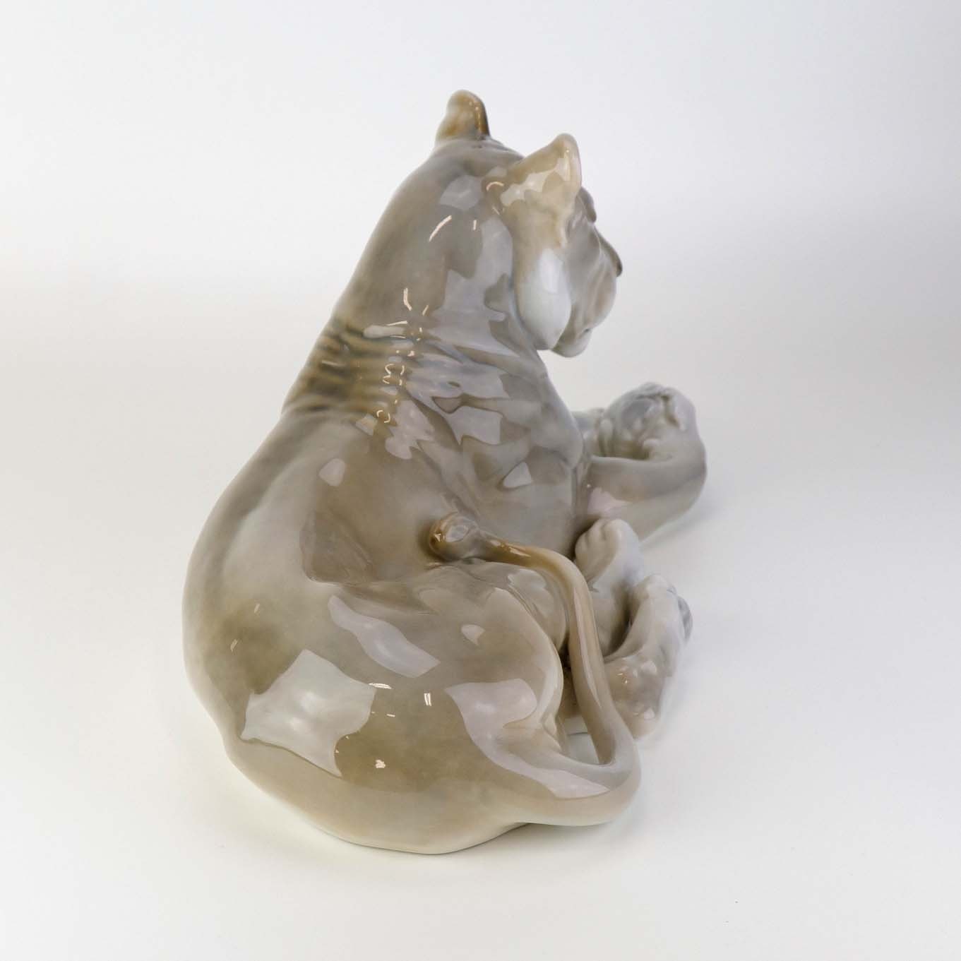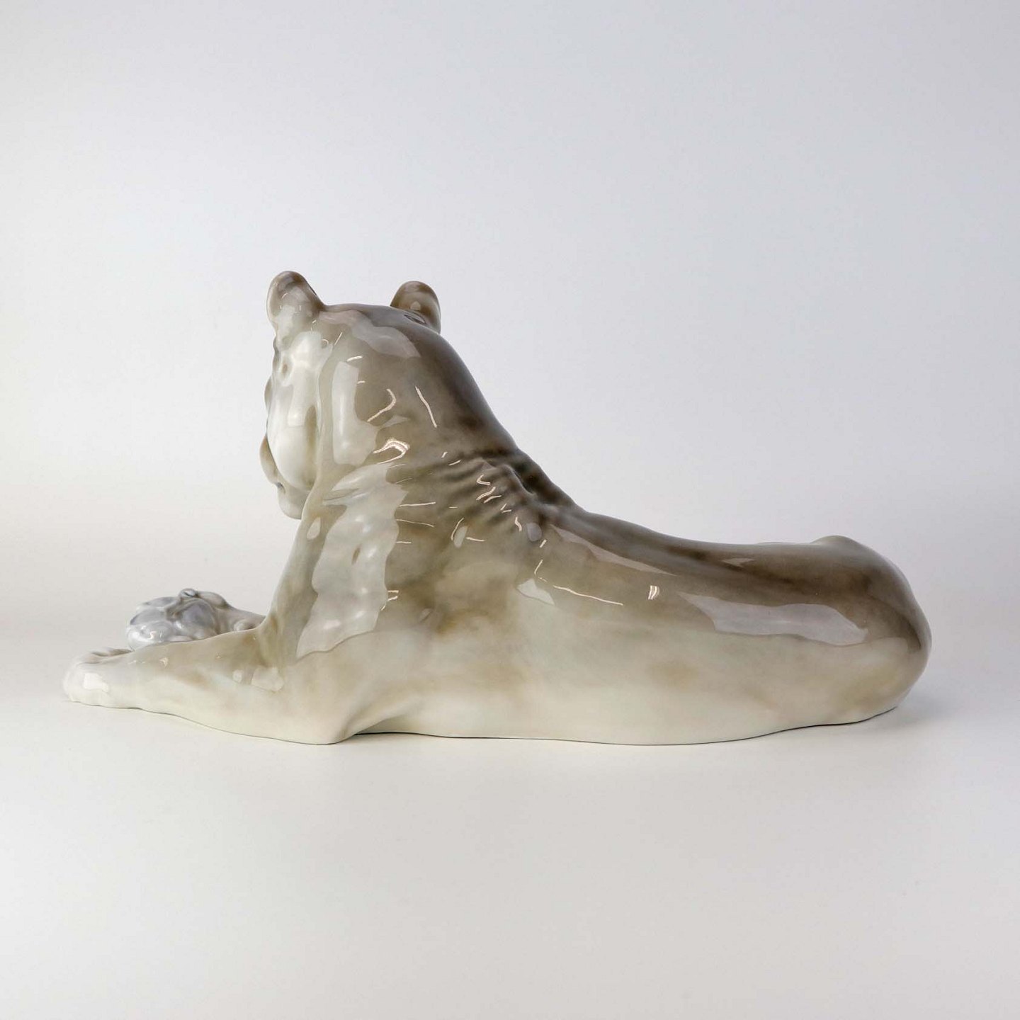 Figur i porcelæn med motiv af hvilende løvinde. Nr. 804Producent Royal Copenhagen