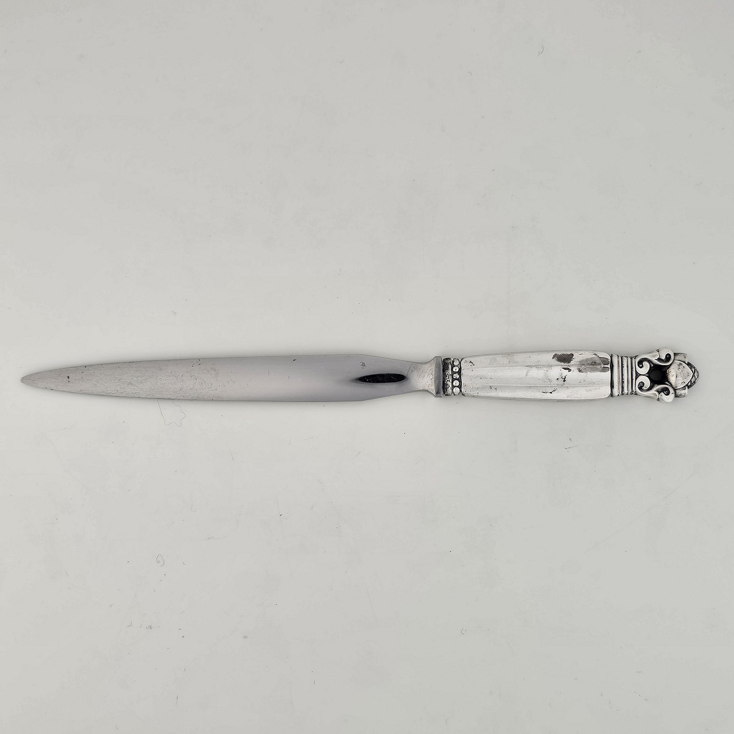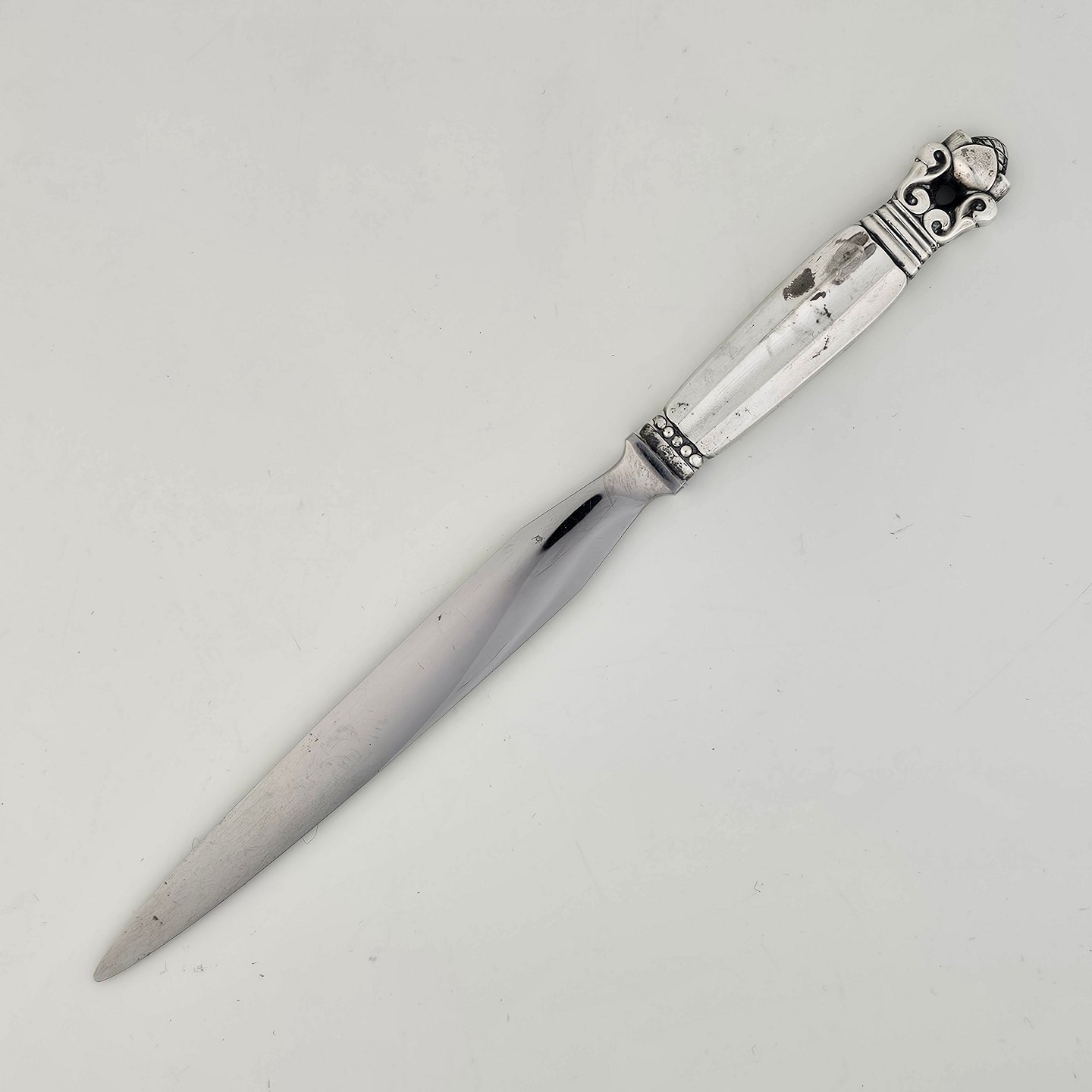 Kongemønster brevåbner med skæfte af sterling sølv 925 og knivsæg af rustfrit stålProducent Georg Jensen