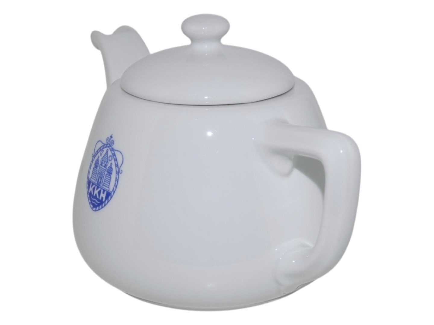 Royal Copenhagen, lille hvid tekande i tykt hotelporcelæn med logo fra Københavns Kommune Hospital (KKH).1. sortering.
