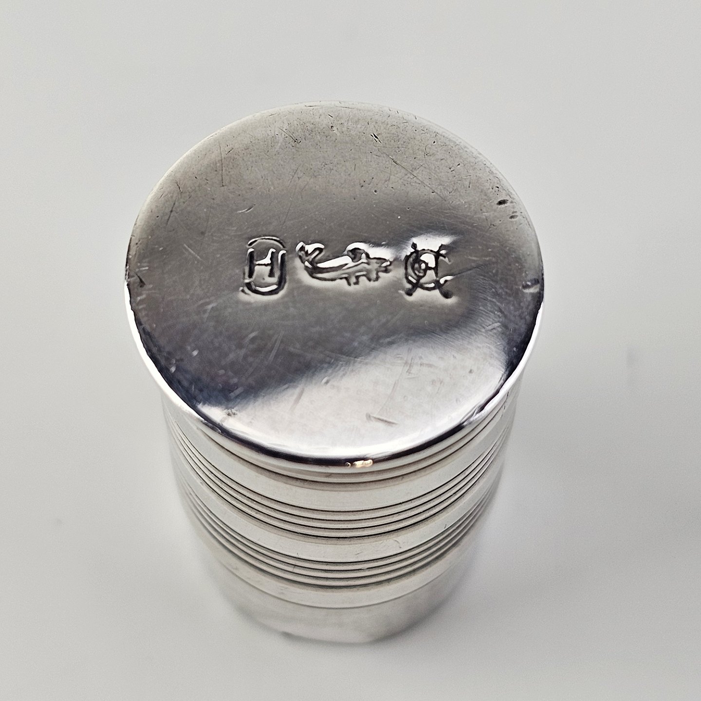 Læbestiftholder i pletsølv med stempler på toppenProducent: Hans Jensen