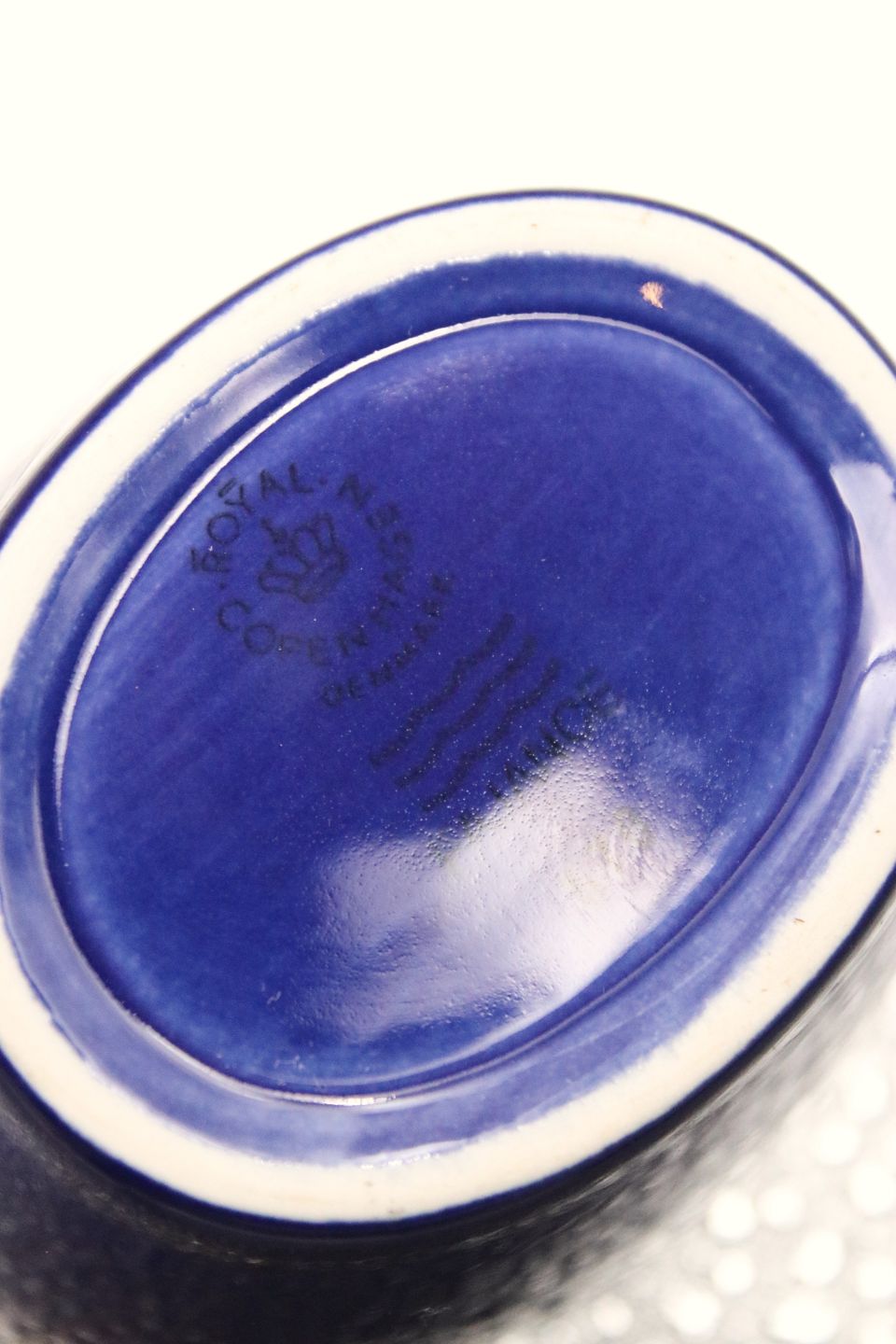 i mørkeblå glasur. H: 4,7cm. 8,5x6,5cm.