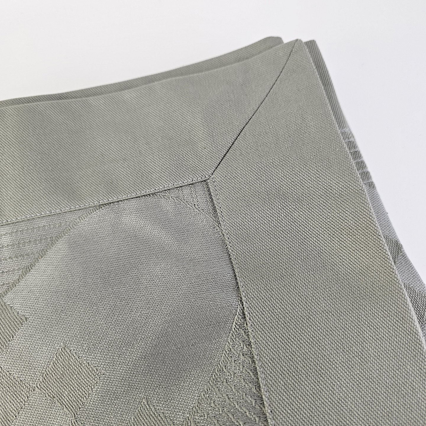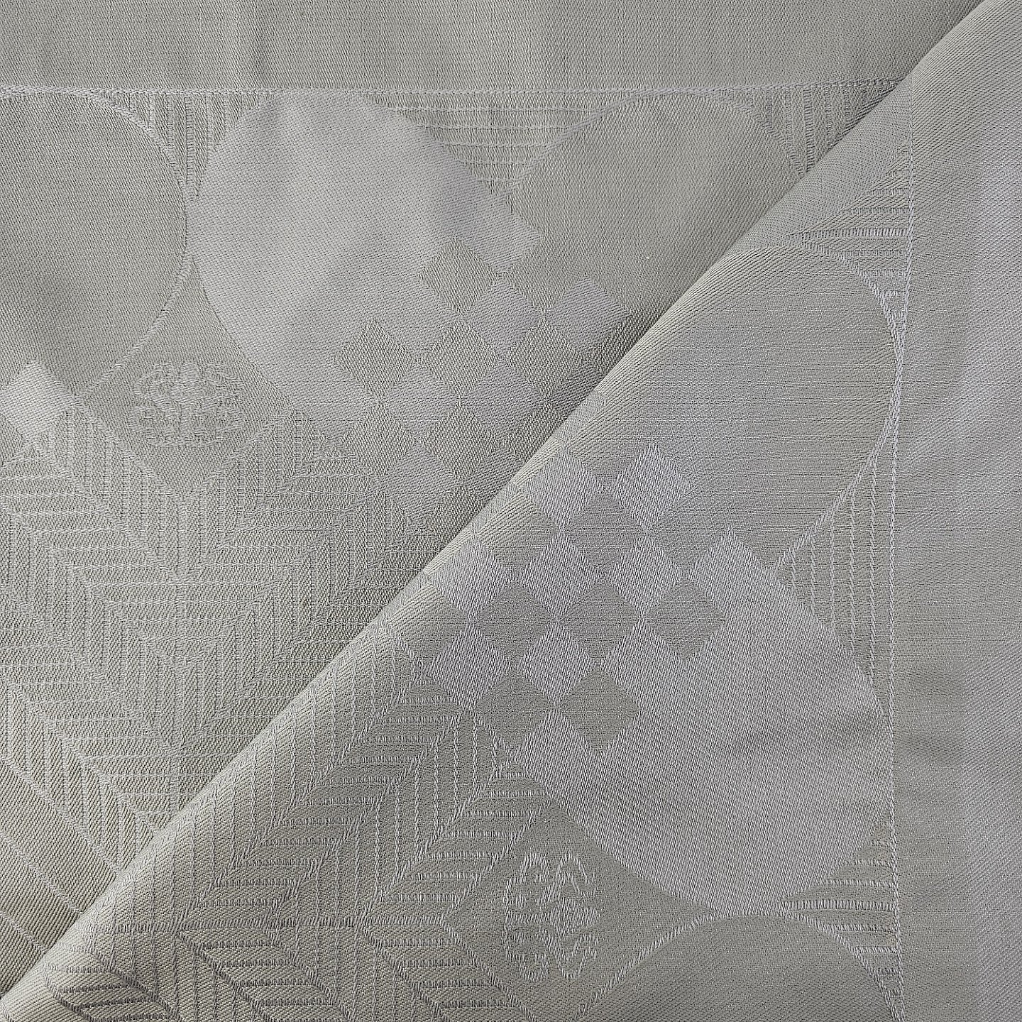 Grå vævet damask dug med motiv af julehjerterProducent Georg Jensen