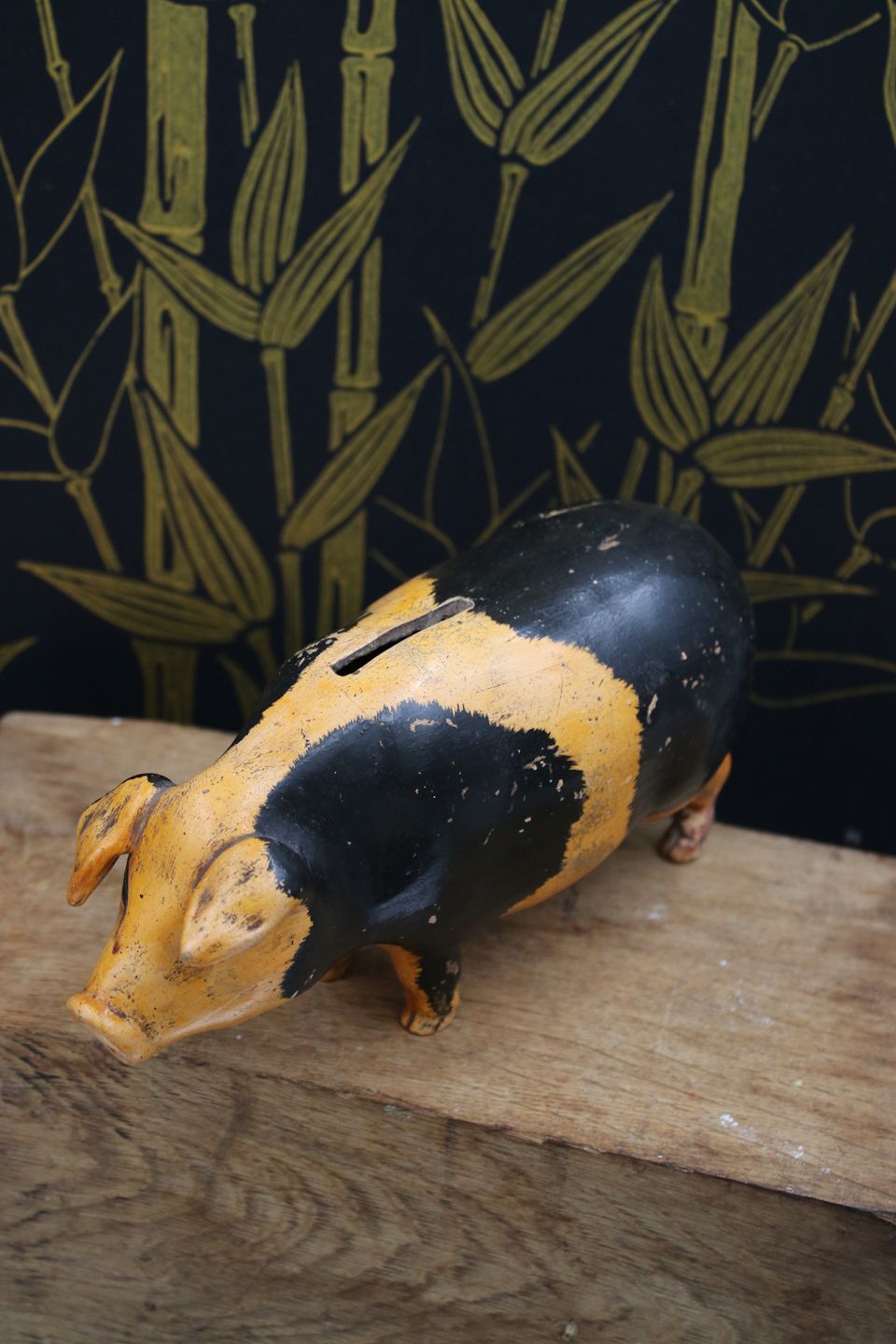 Dekorativ , 1800 tals sparegris i terrakotta med fin original bemaling og fin patina. H: 11cm. L: 23cm.Emne nummer: Sparegris