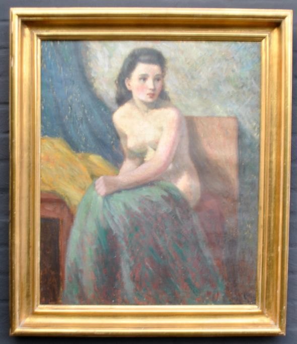 Helme, Helge (1894–1987) Dänemark: Sitzendes Modell. Öl auf Leinwand. Signiert: H. Helge 1945. 65 × 53 cm.Gerahmt: 79 x 66 cm.
