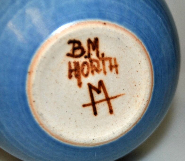 Keramik von Hjorths, 20. Jahrhundert. Bornholm, Dänemark. Einzigartige Schale. Steinzeug. Mit seitlicher Dekoration. Dunkelblaue Glasur. Gestempelt: BM, Hjorth und Monogramm M. Höhe: 8 cm.Bestellnummer: 28659