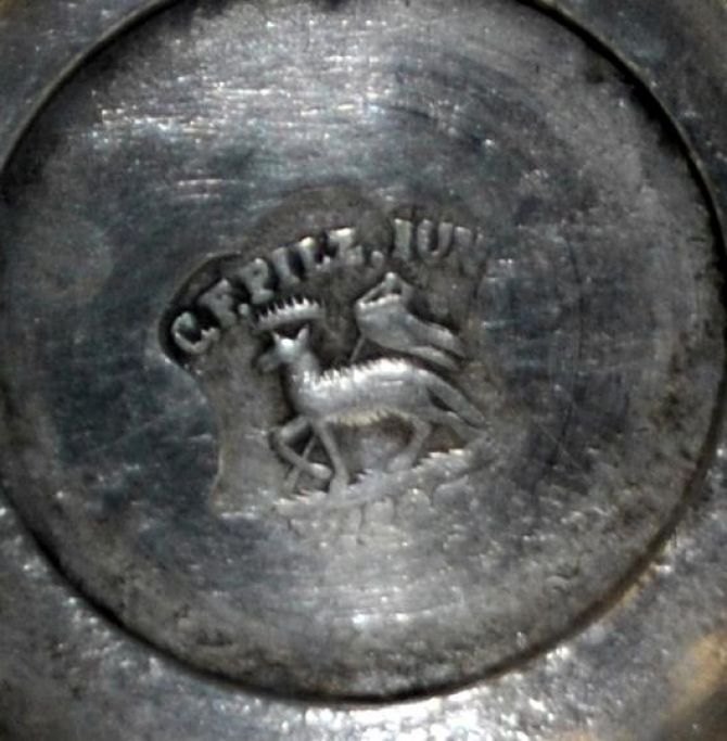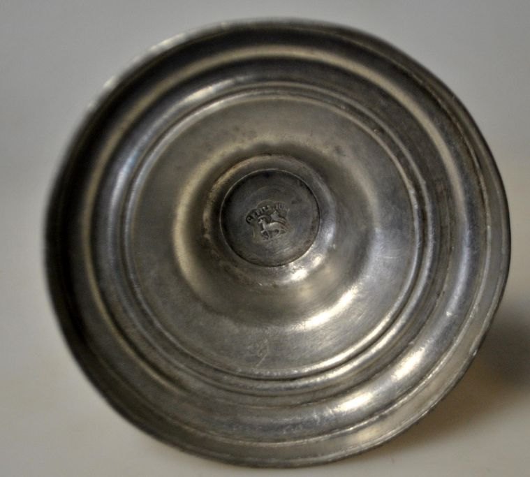 Empire-Kerzenleuchter aus Zinn, 19. Jahrhundert. Gestempelt: CF Pilz, jun. Höhe: 17 cm.Hervorragender Zustand!