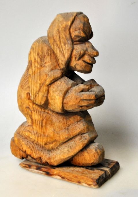 Petersen, Thorvald (1899–1988) Dänemark: Eine schreitende Frau. Holzschnitzerei. Kiefernholz. Signiert. Höhe: 19,5 cm.