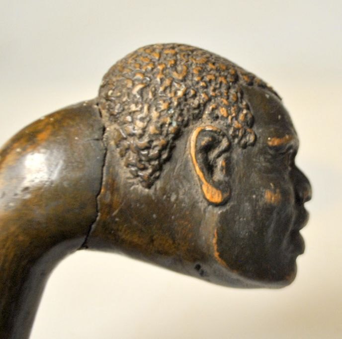 Spazierstock aus Holz mit geschnitztem Gesicht, 19. Jahrhundert.