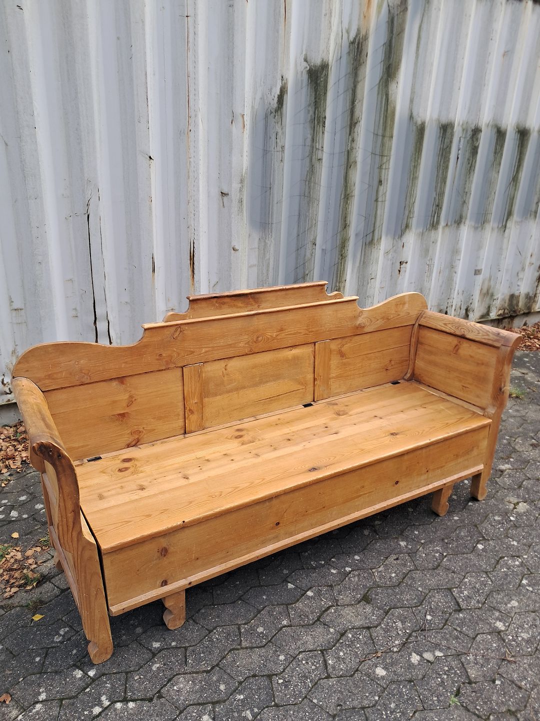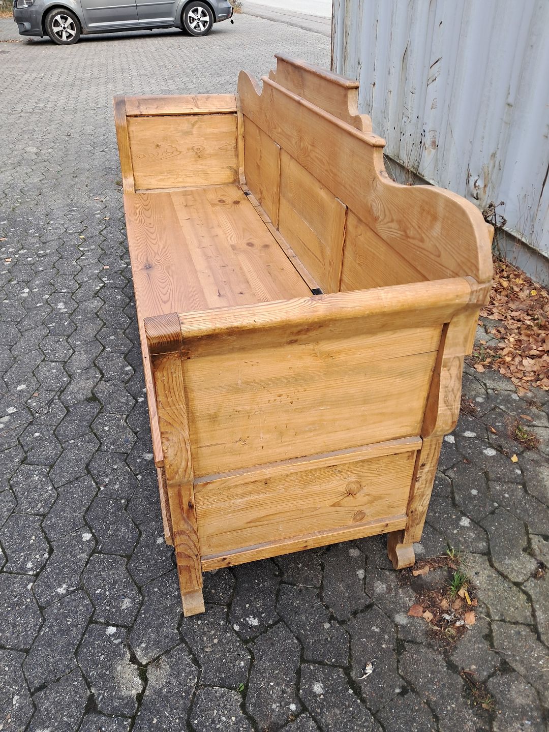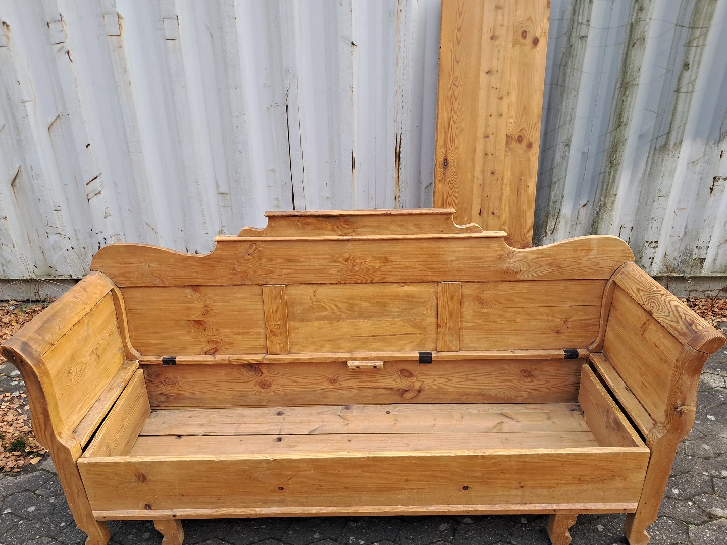 Slagbænk i massivt fyrretræ, fra 1910erne.Den har brugsspor.