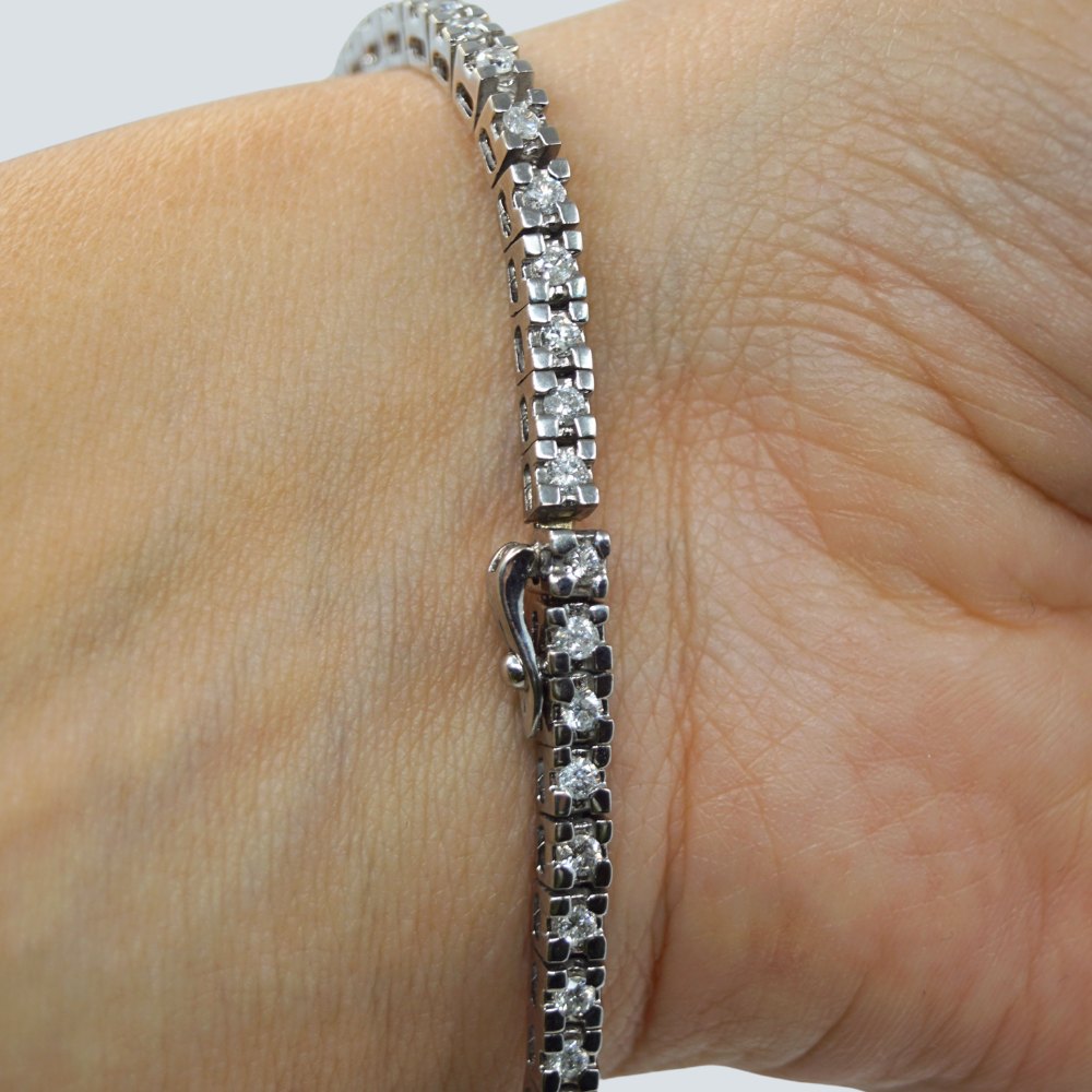 Tennisarmbånd af 18 kt. hvidguld prydet med brillanter. Brillanter i alt ca. 1,53 ct. Wesselton - SI. Monteret med kasselås samt en sikkerhedslås. Diamantarmbånd.l. 18 cm. B. 3 mm.