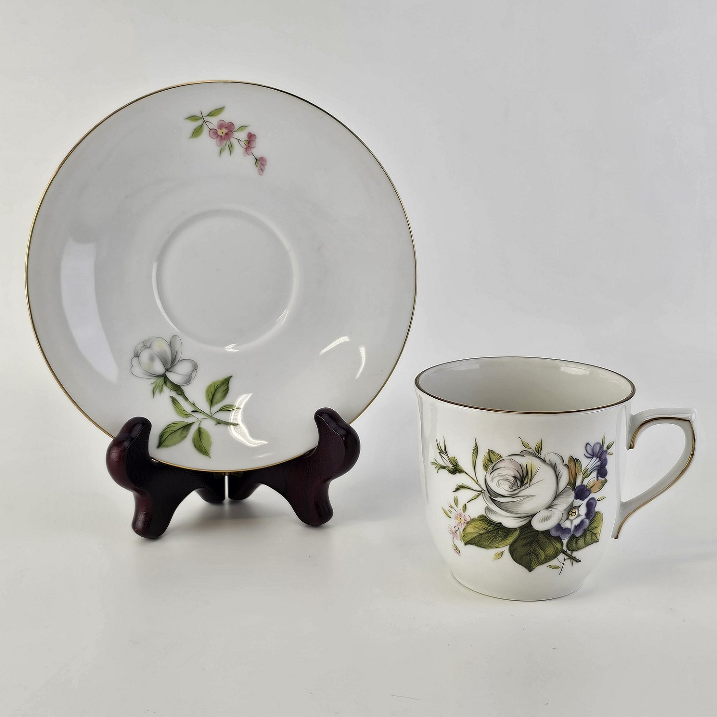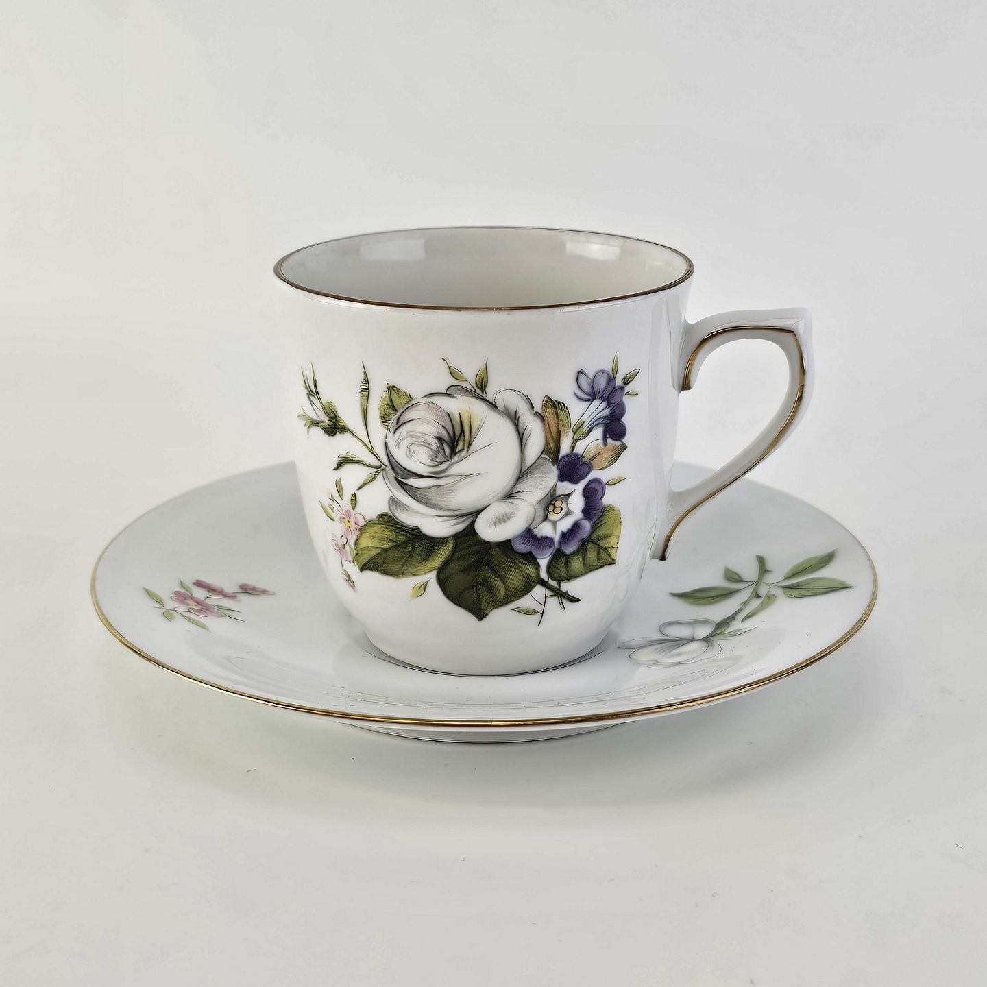 Paris er porcelæn med guldkant og motiv af hvide roser og violer