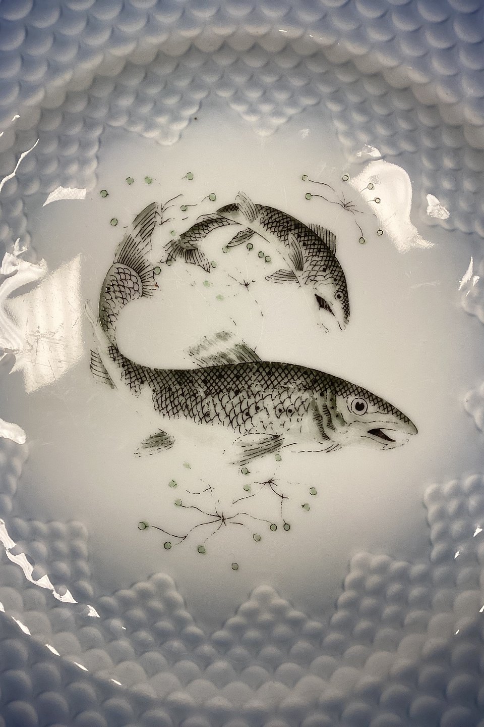Bing og Grøndahl Blå Tone Fisketallerken Motiv 2 Laks No. 716 - SKÅRET/SLIDT