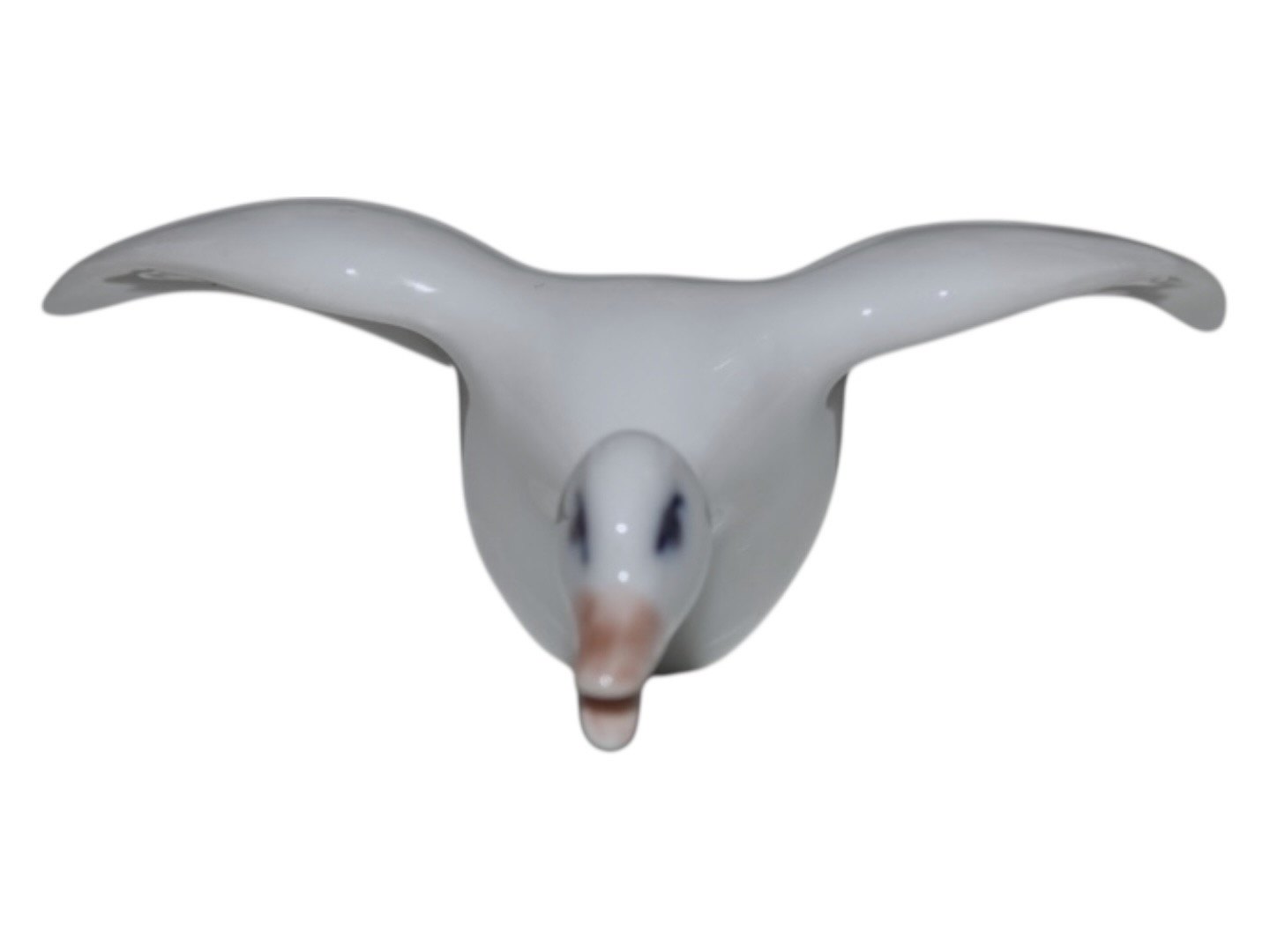 Royal Copenhagen miniature fugle figur, hvid flyvende and.Dekorationsnummer 7/2215.