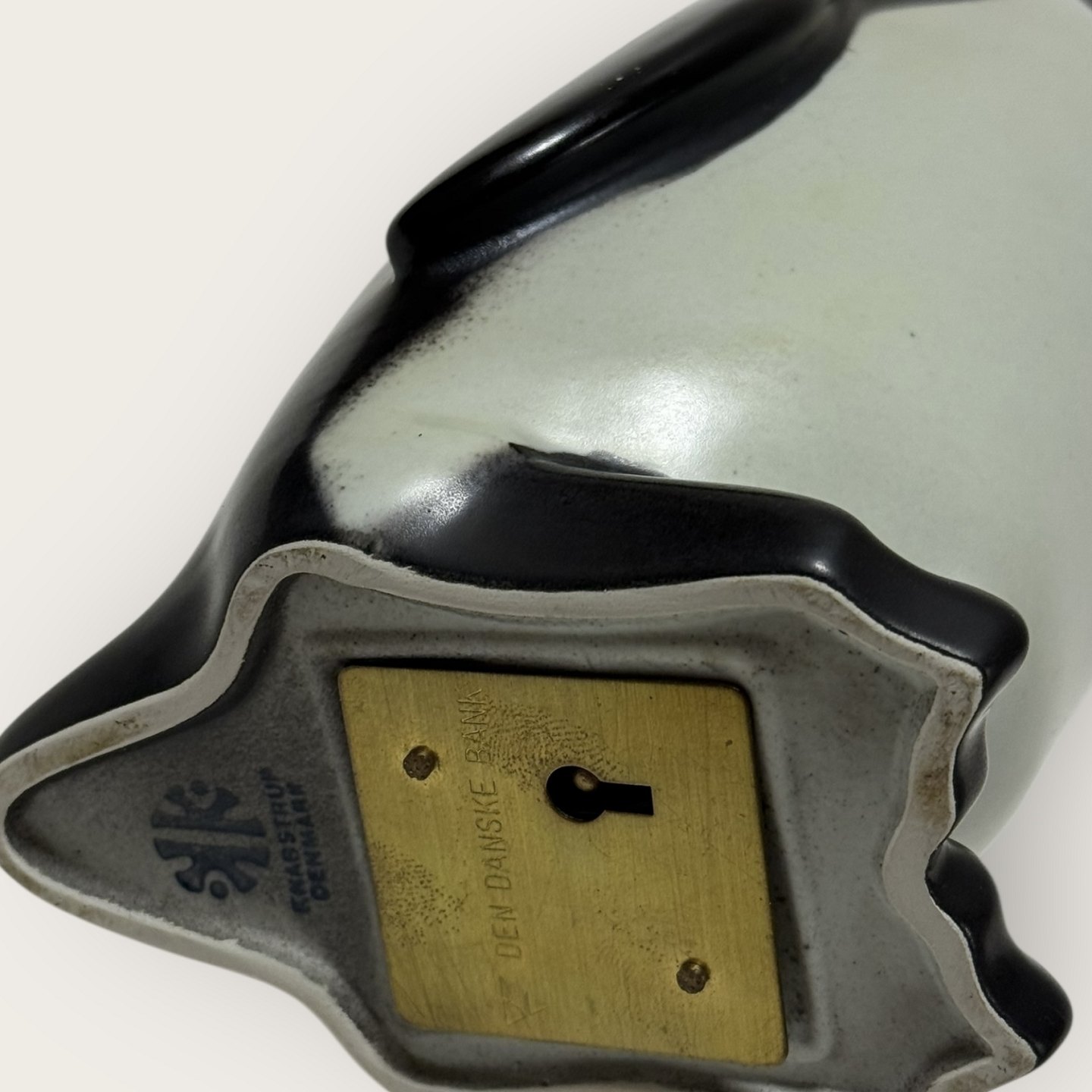 Knabstrup-Keramik, Pinguin-Spardose, Pondus, hergestellt für die Den Danske Bank, 27 cm hoch, guter Zustand, aber Schlüssel fehlt.Lager: 1