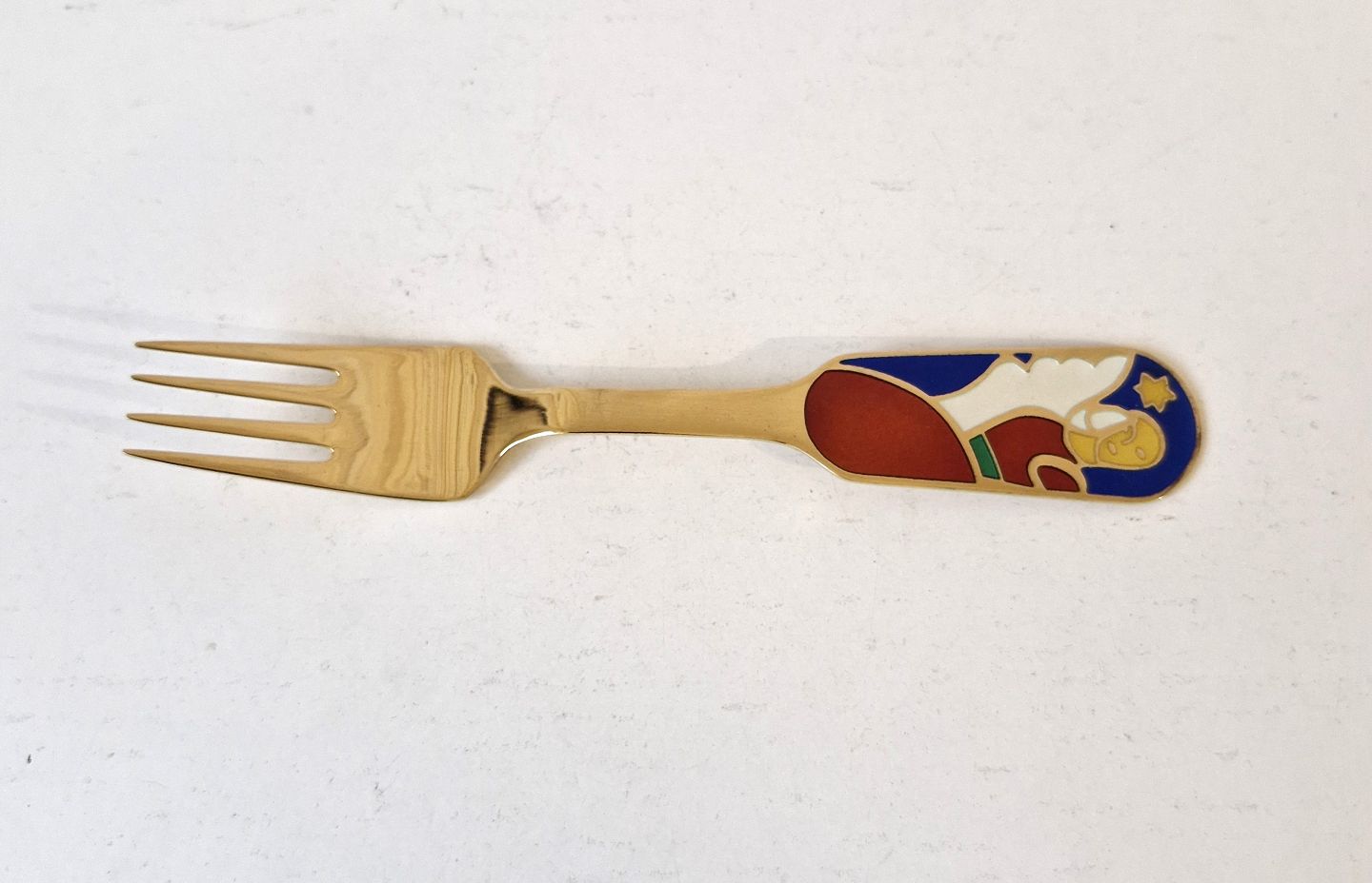 A.Michelsen julegaffel i forgyldt sterlingsølv og emalje fra 1989Stemplet: A.Michelsen - Sterling - Denmark