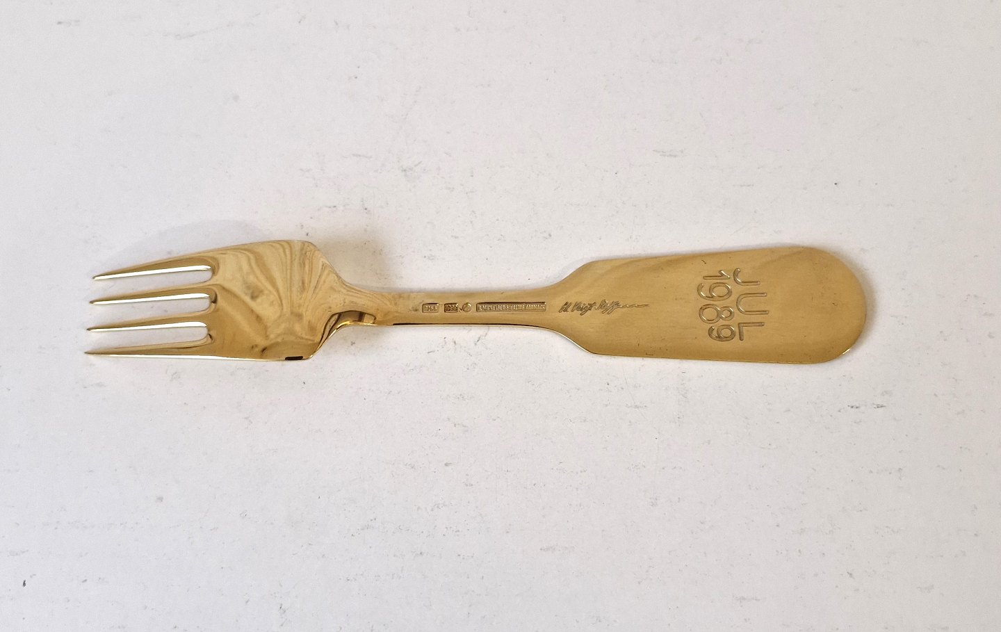 A.Michelsen julegaffel i forgyldt sterlingsølv og emalje fra 1989