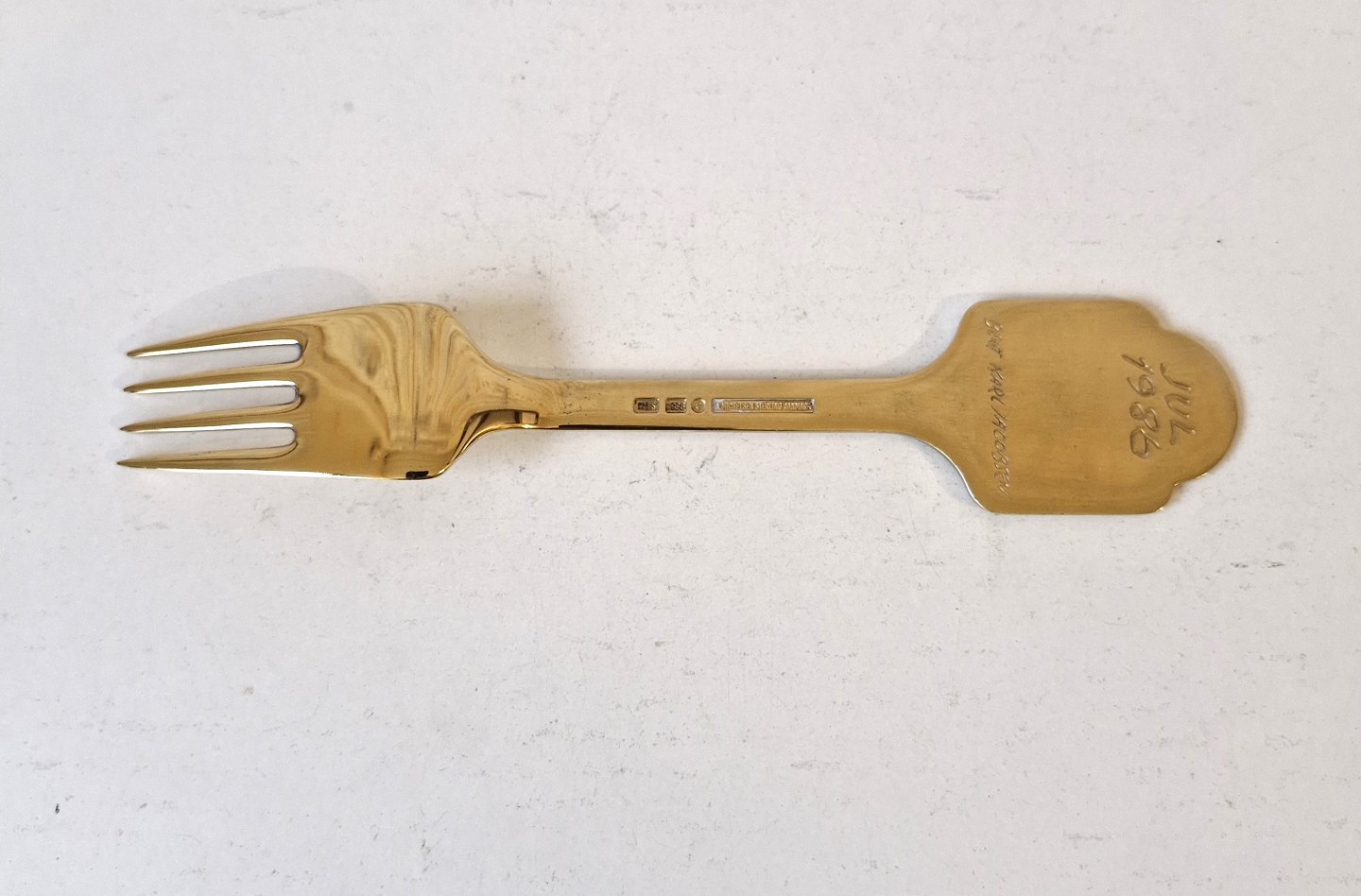 A.Michelsen julegaffel i forgyldt sterlingsølv og emalje fra 1986Stemplet: A.Michelsen - Sterling - Denmark
