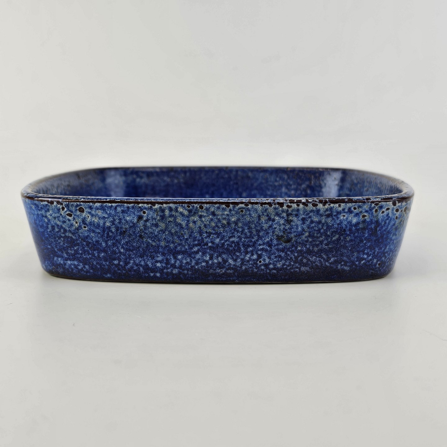 Firkantet skål i fajance fra Baca serien med mønster i blå og sort