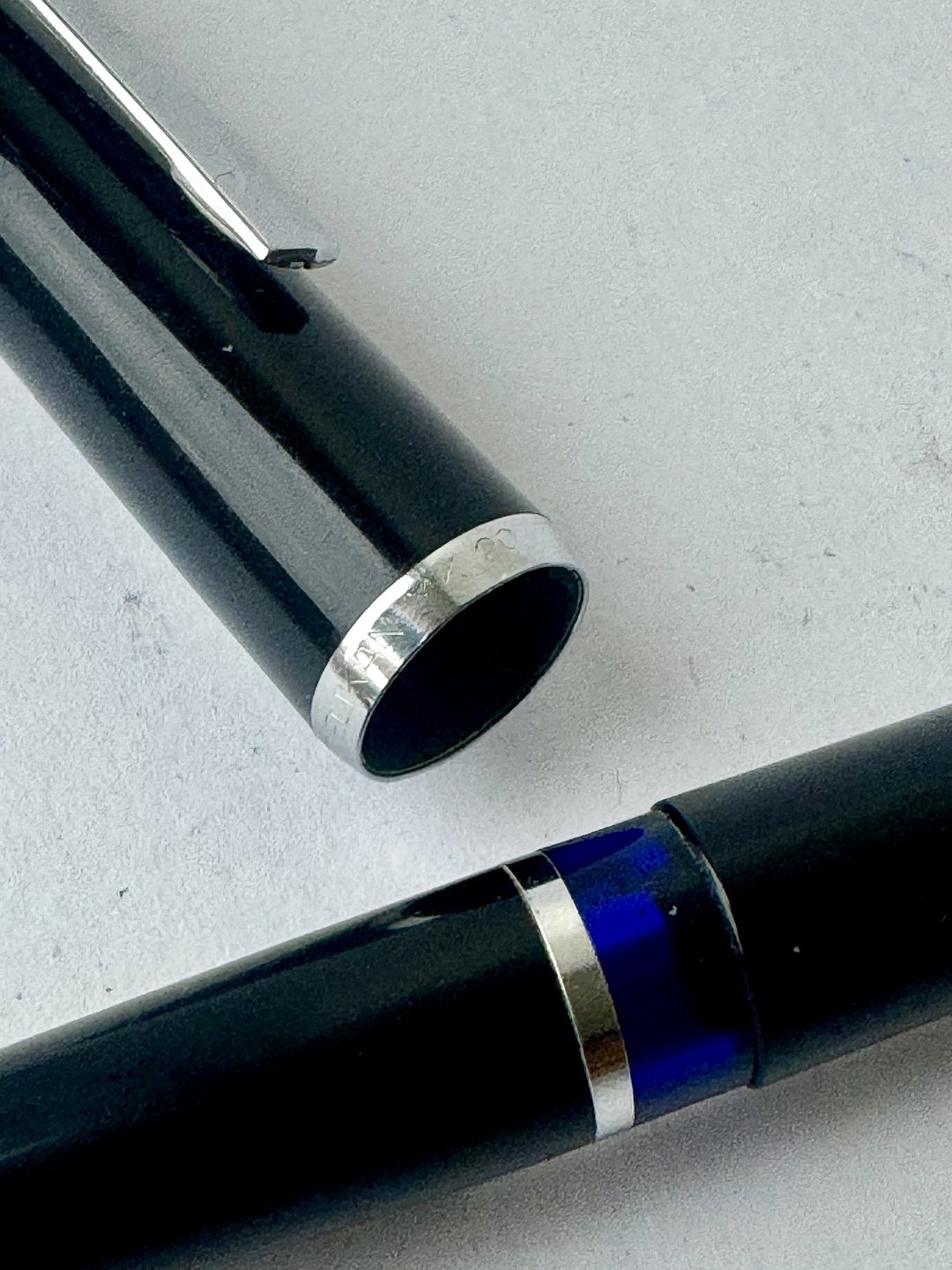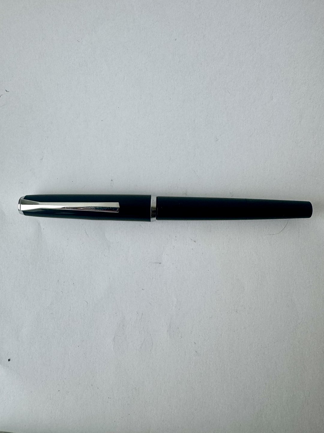 Ældre sort Pelikan Silvexa 20 fyldepen med forkromet dele. Fremstillet i Tyskland i midten af 1960’erne. Der skal indsættes ny refill før end den igen er skrivedygtig. Længde: 13,4 cm