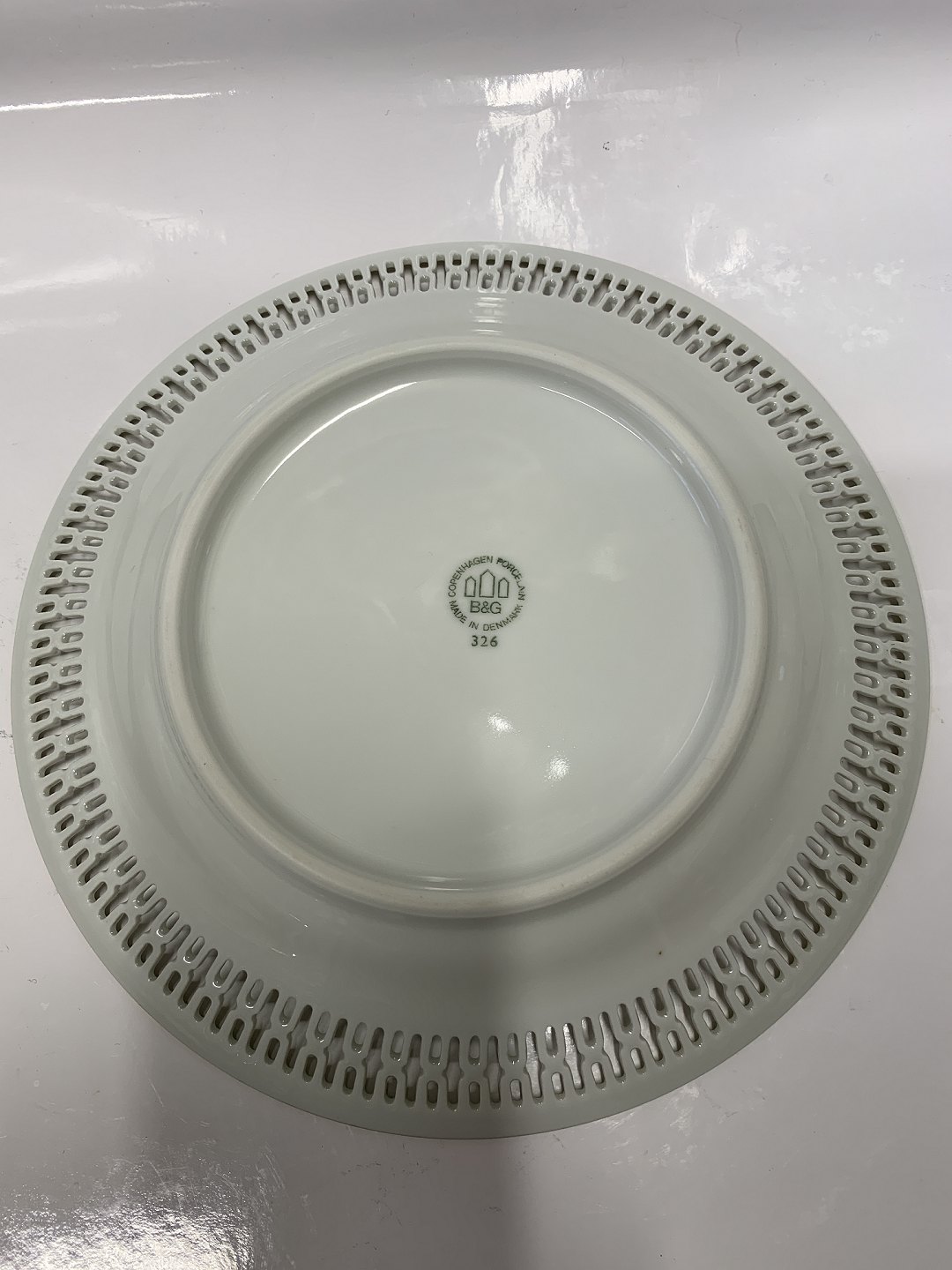 Bing & Grøndahl, Haga, Frokosttallerken med guld og gennembrudt kant. Dek. Nr. 326.