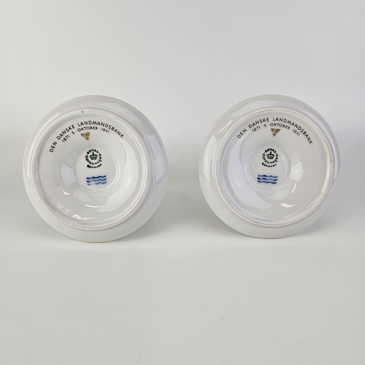 Lysestager i kongeligt porcelæn fra stellet Guld VifteStagerne er stemplet Den Danske Landmandsbank, 1871 5. oktober 1971