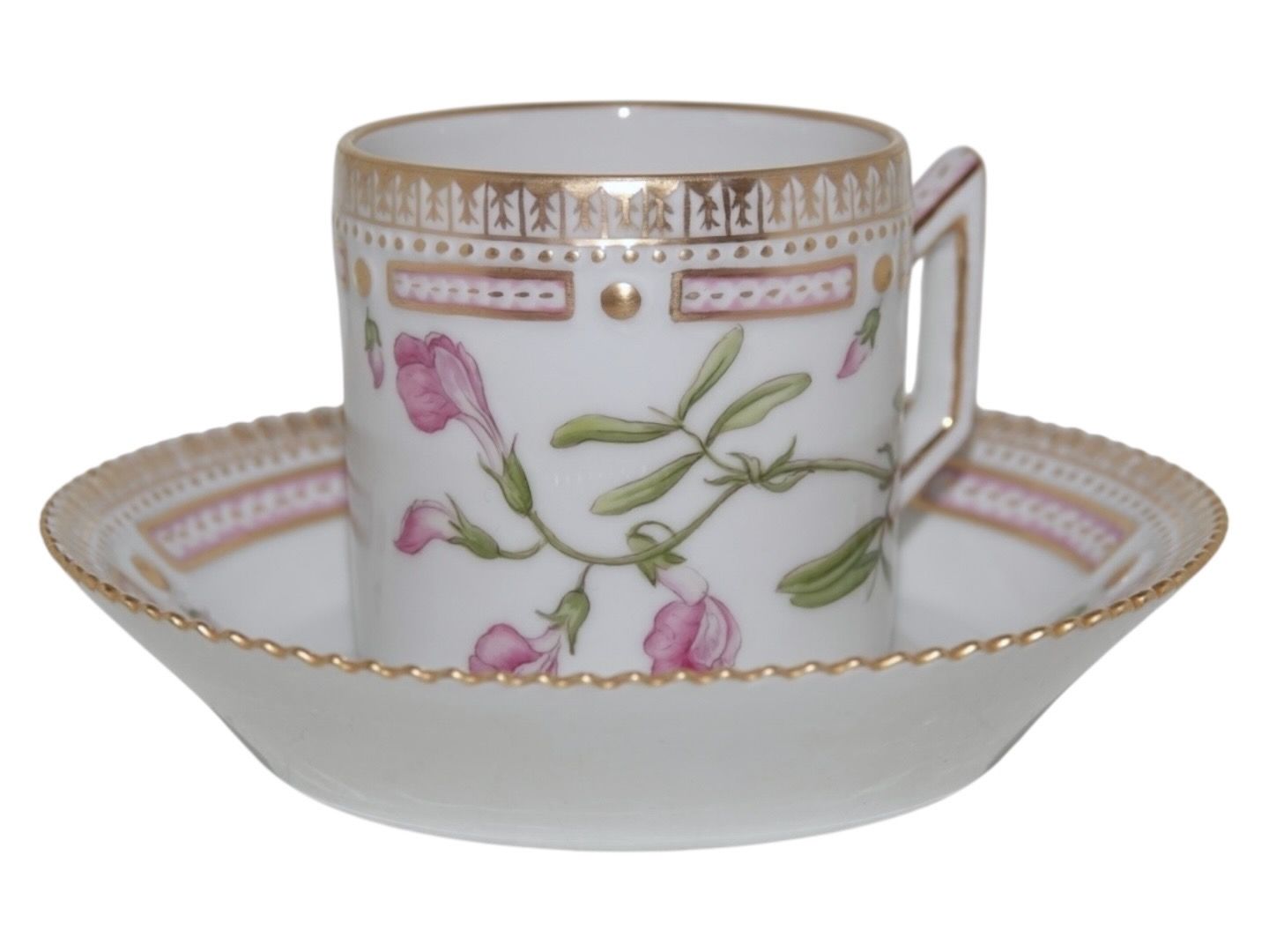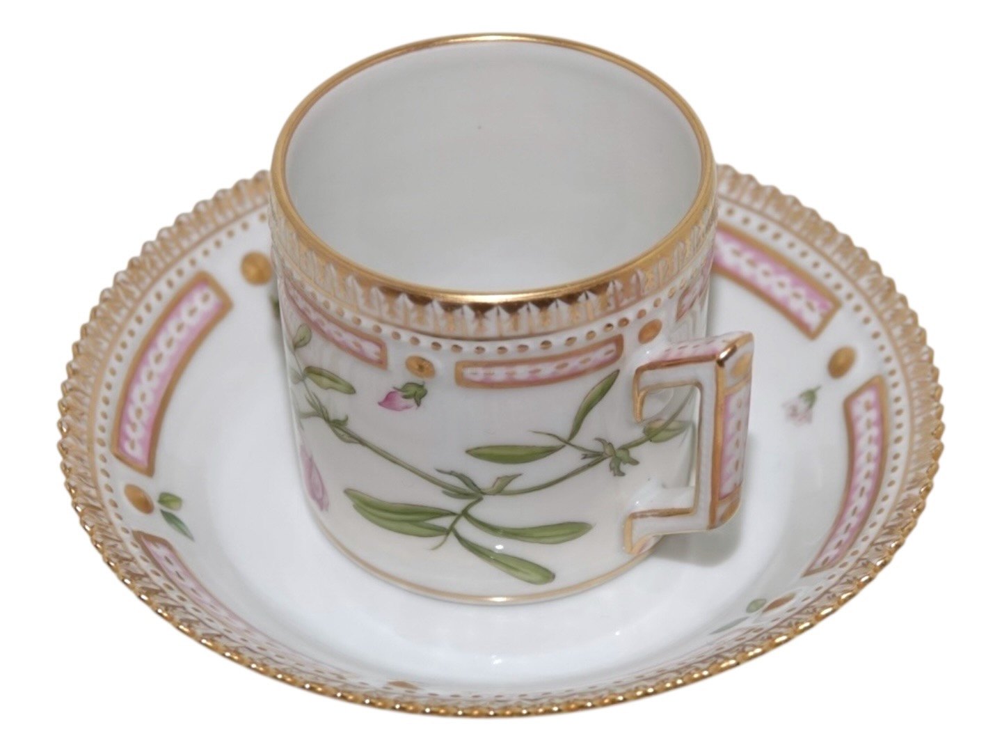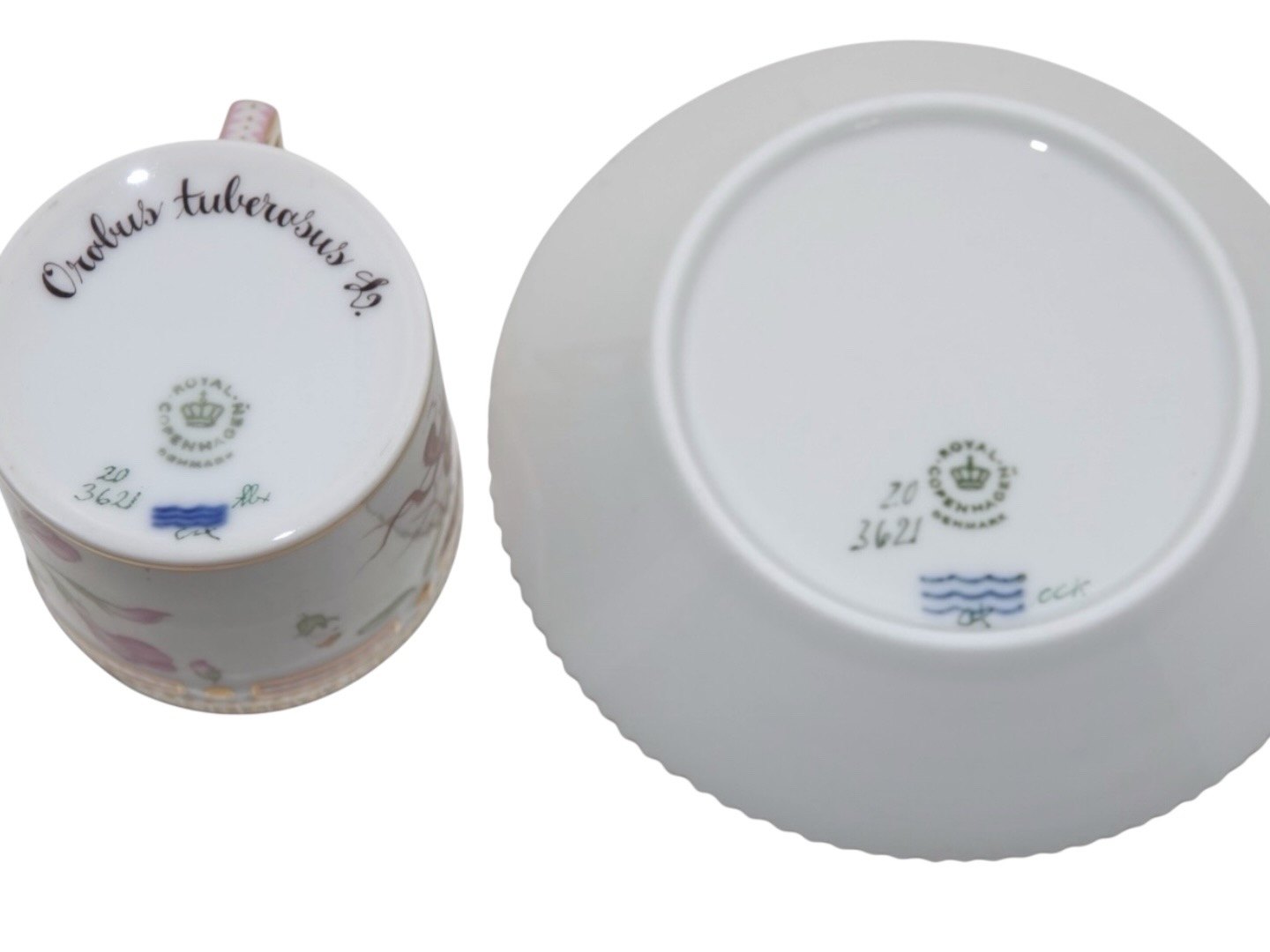 Royal Copenhagen Flora Danica, lille tøndeformet espressokop med tilhørende underkop.Dekorationsnummer 20/3621.