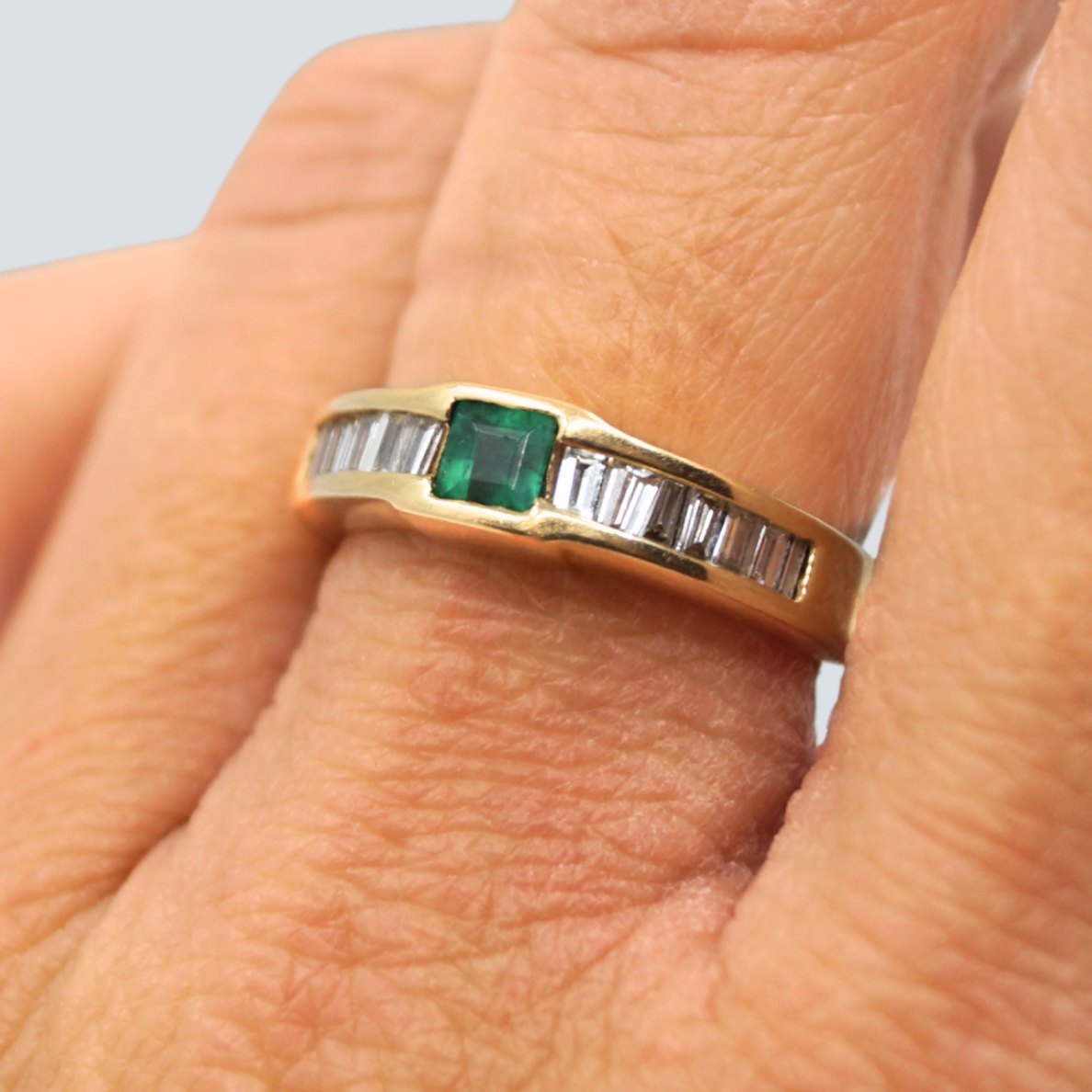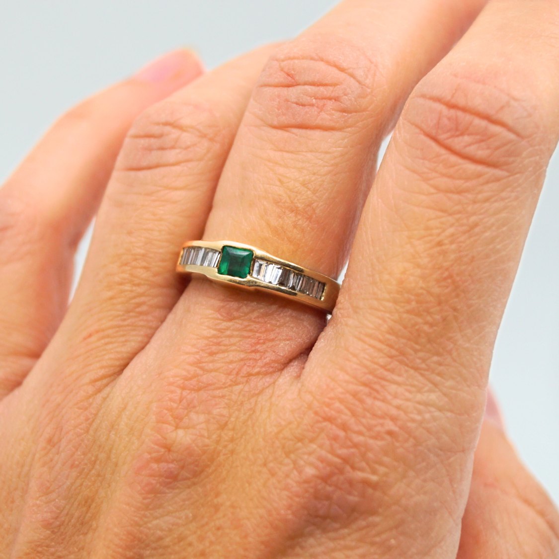 Ring i 18 kt. guld prydet med diamanter og smaragd