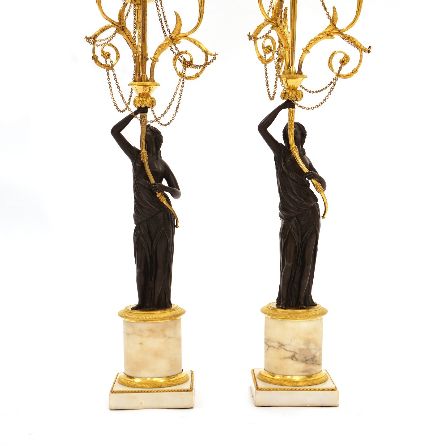 Ein Paar grosse feuervergoldete Bronzekandelaber mit Marmormontierung